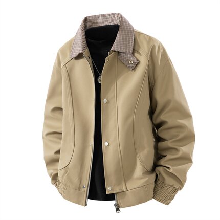 夹克男春秋季新款初中高中美式复古情侣款宽松休闲百搭翻领外套