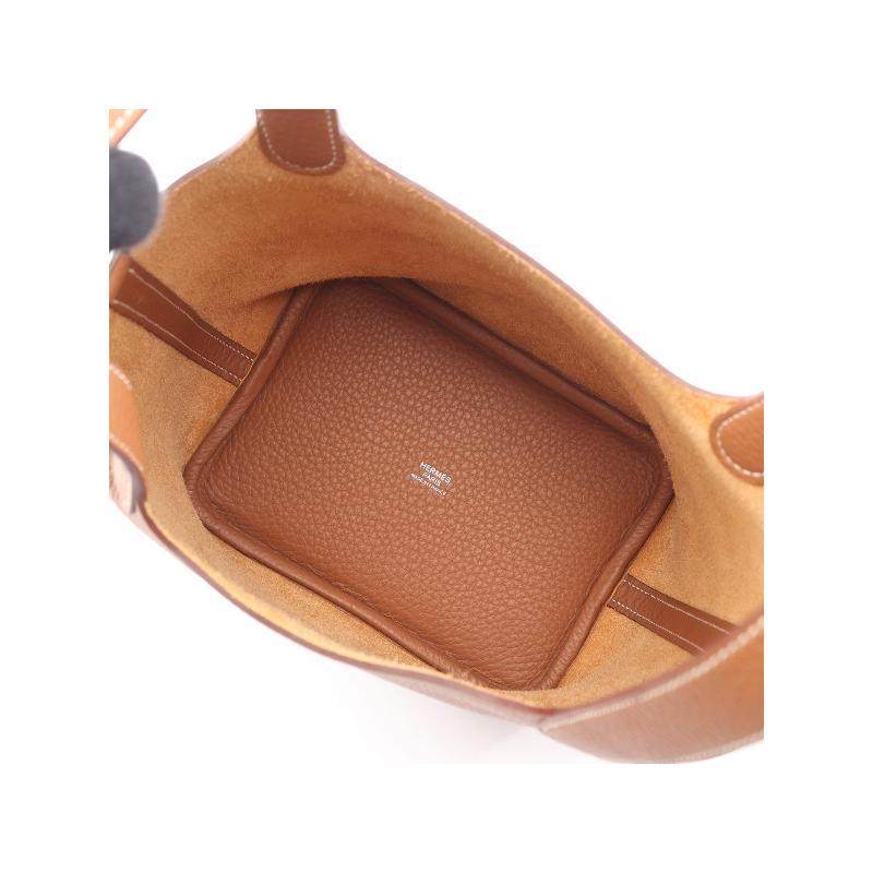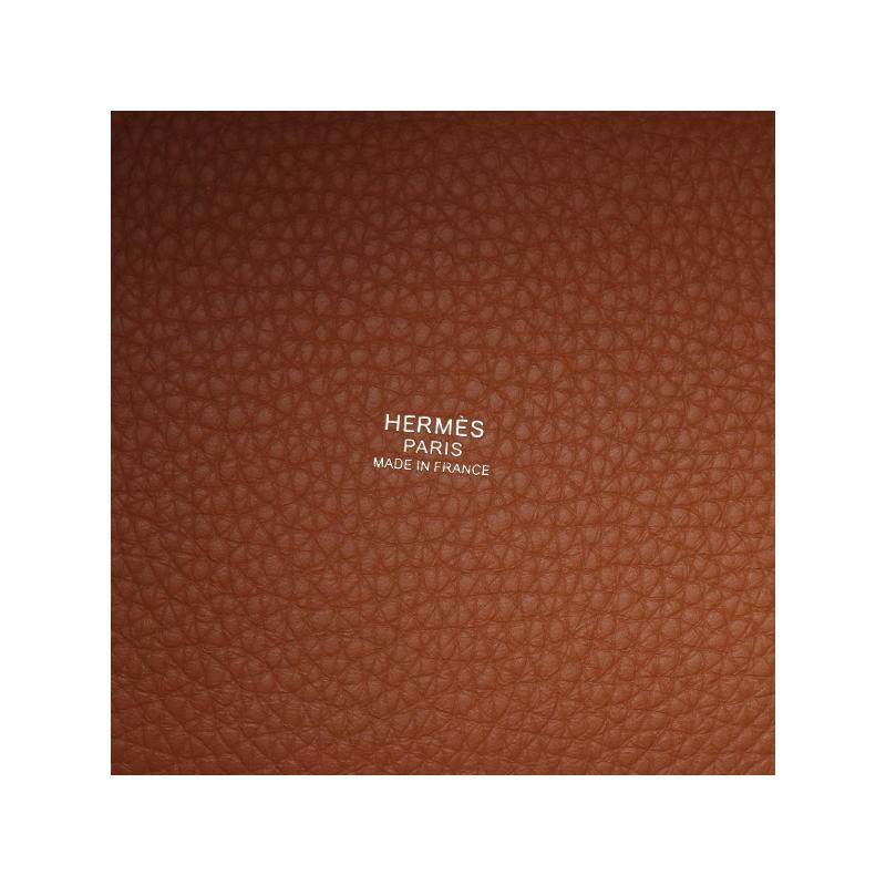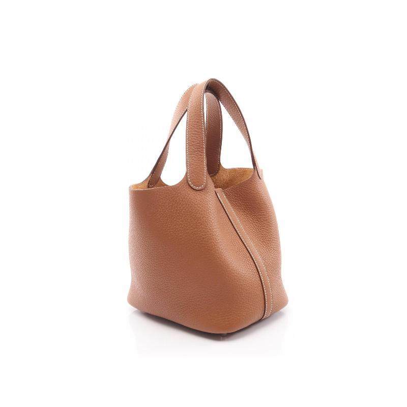 中古Hermes爱马仕女包S级99新picotan lock菜篮子牛皮手提包棕色
