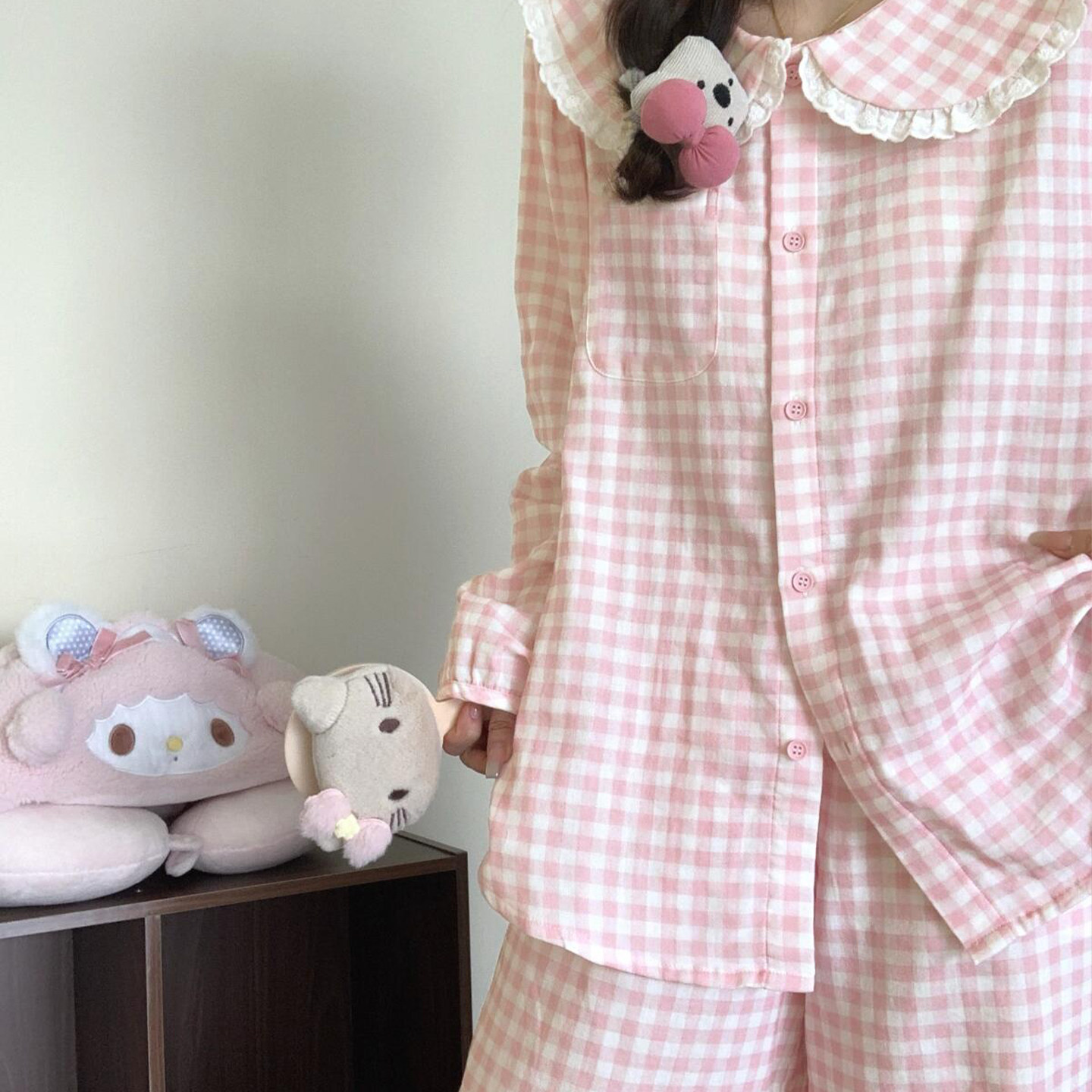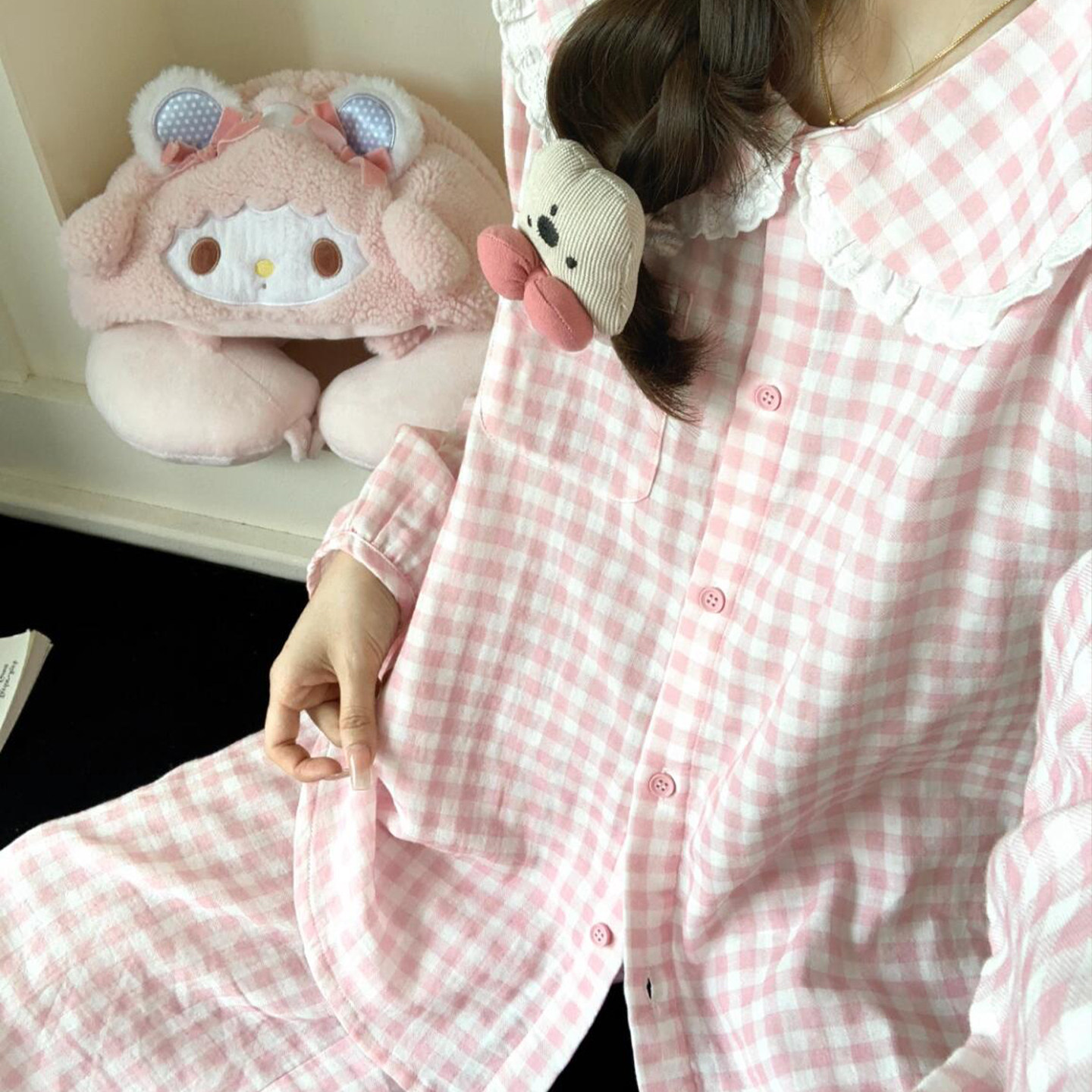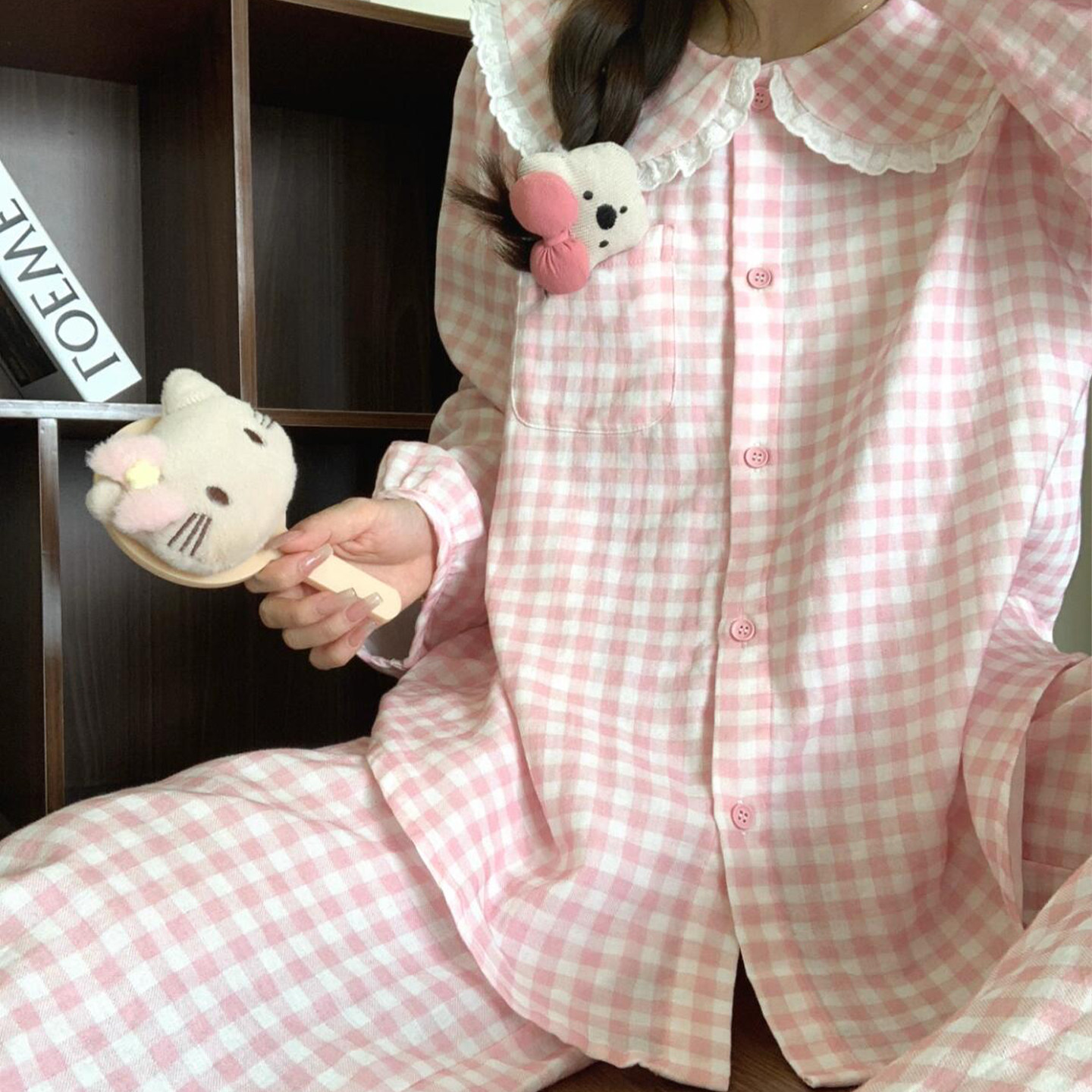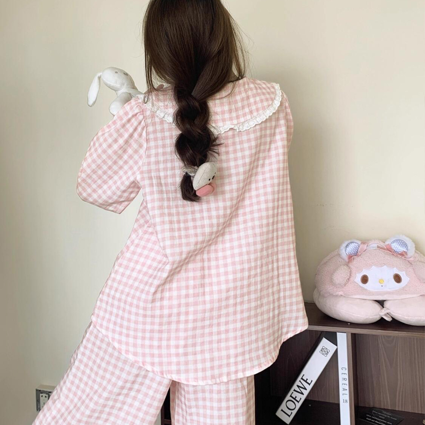 春秋甜美粉色格子睡衣套装女2026春秋季新款长袖长裤大码家居服