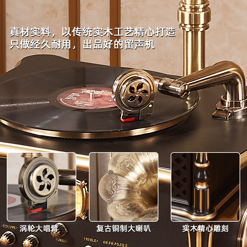 圣利纳怀旧留声机美式复古cd黑胶一体机欧式客厅老物件唱片机音响