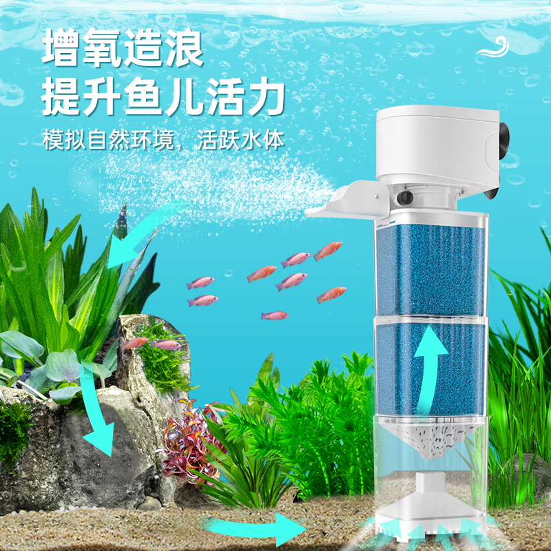 小型鱼缸过滤器内置超静音制氧三合一体增氧净水循环专用养鱼马桶