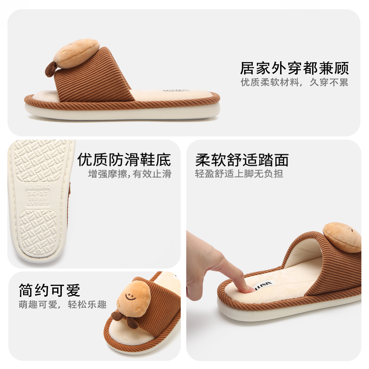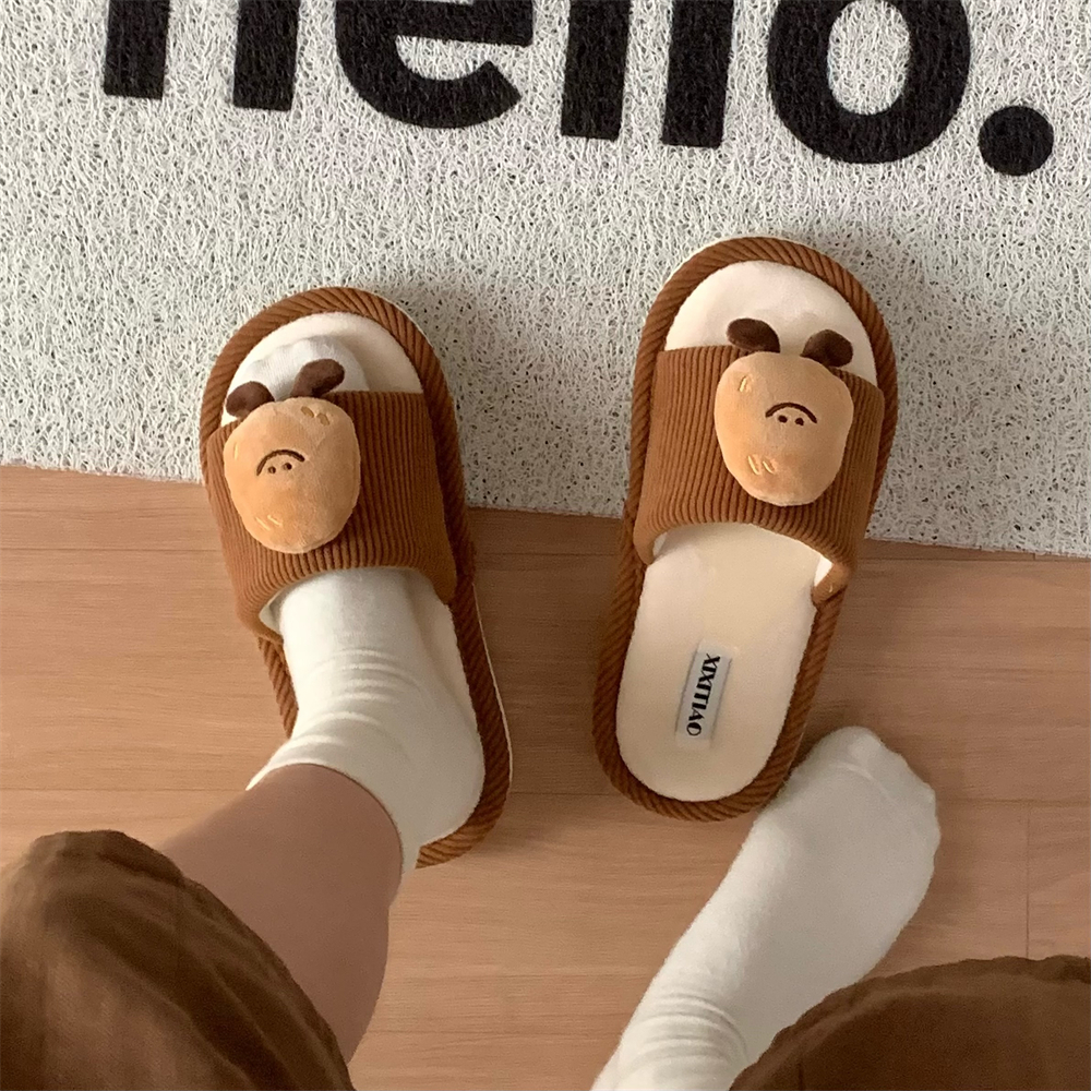 细细条 趣味可颂面包一字棉拖鞋男女防滑情侣秋冬可爱土豆居家鞋