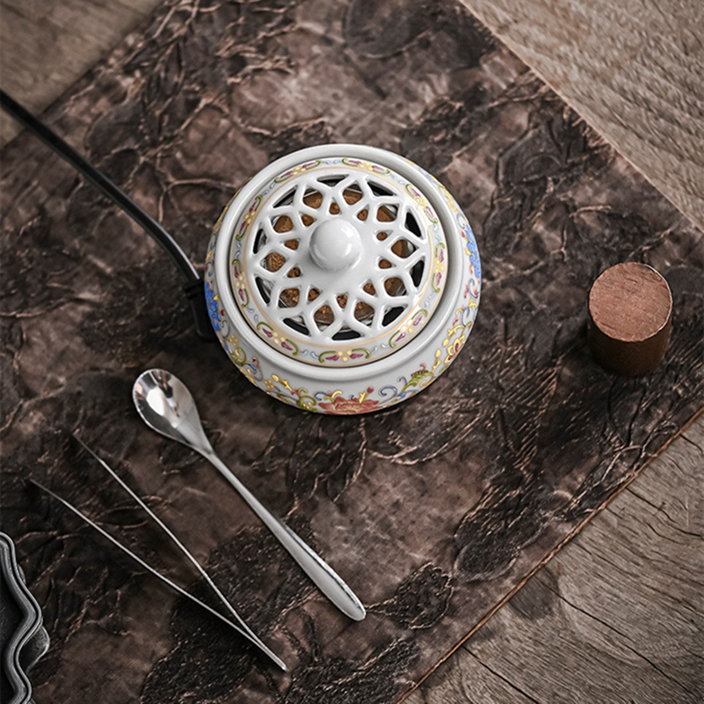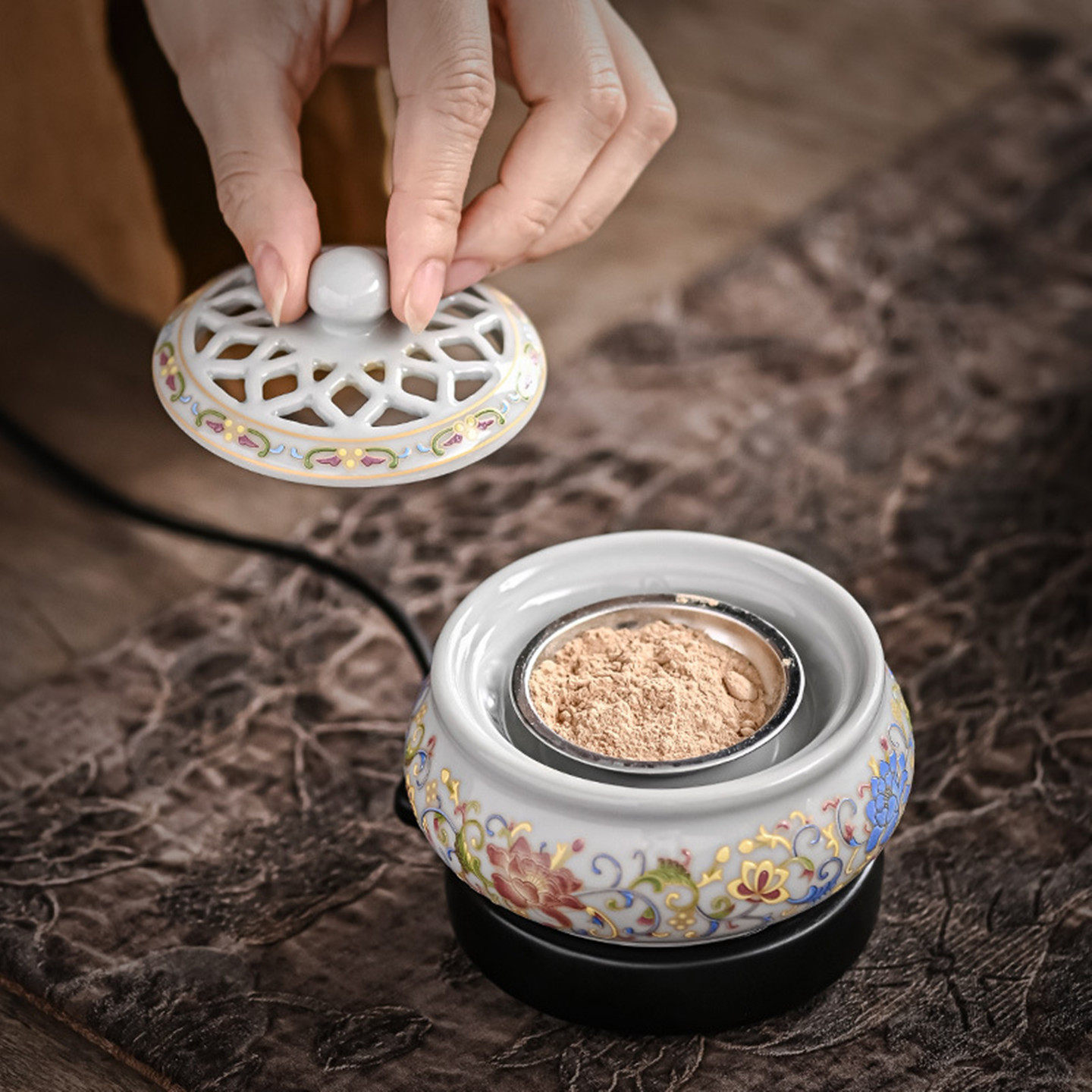 十方可宝电子香薰炉家用室内定时调温恒温插电珐琅彩创意陶瓷香炉
