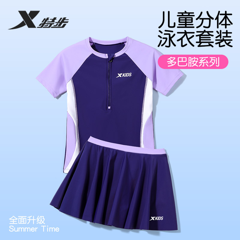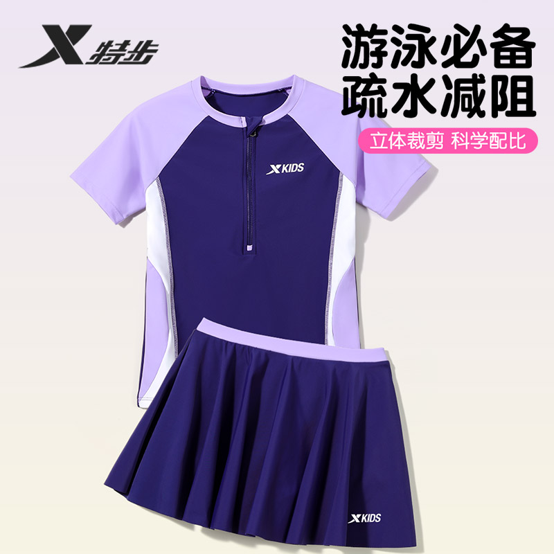 特步儿童泳衣女童2025新款分体裙式防晒速干中大童专业游泳衣女孩