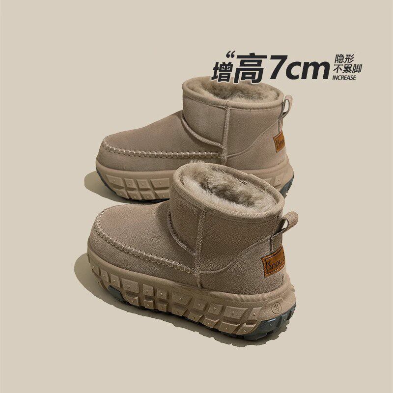 厚底雪地靴女款2024冬季新款低帮短筒加绒加厚保暖内增高休闲棉鞋