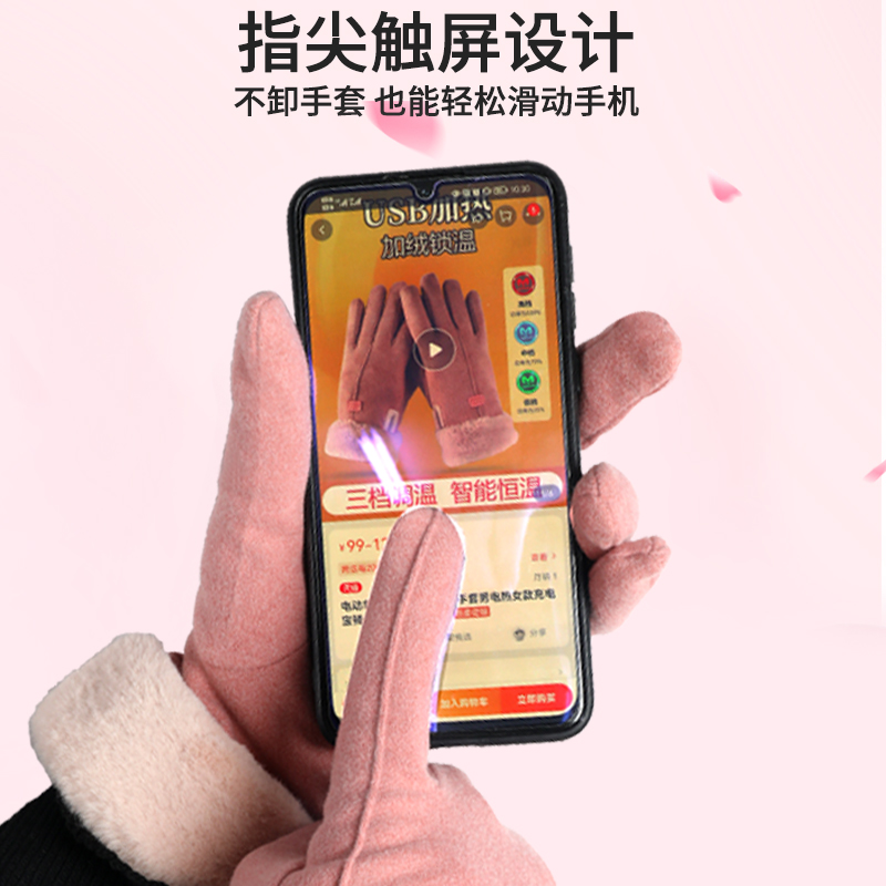 适用爱玛露娜电动车USB充电宝电加热手套保暖自带电发热女款手套
