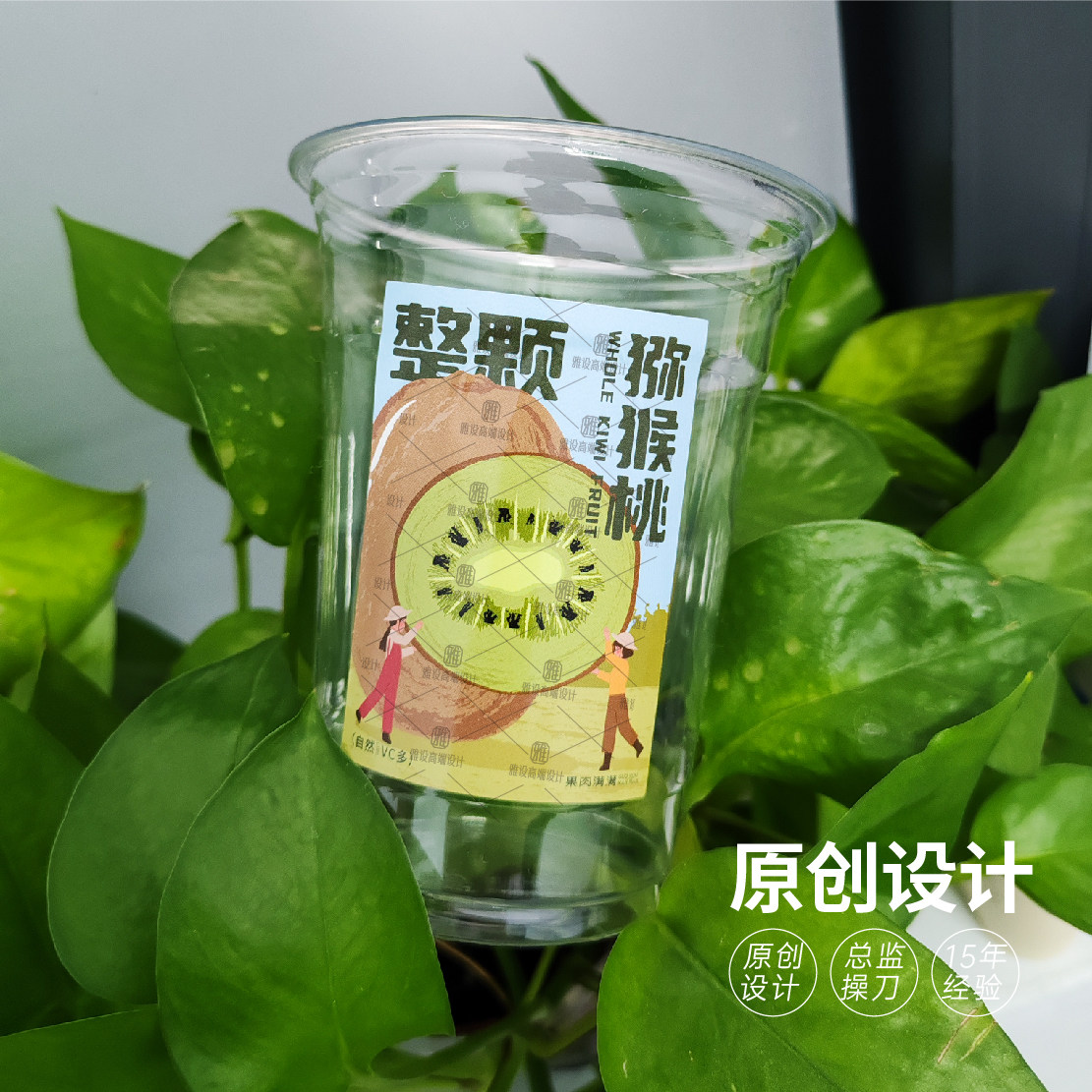 猕猴桃贴纸奇异果标签水果汁饮品杯贴红心绿心翠香打包盒商标定制