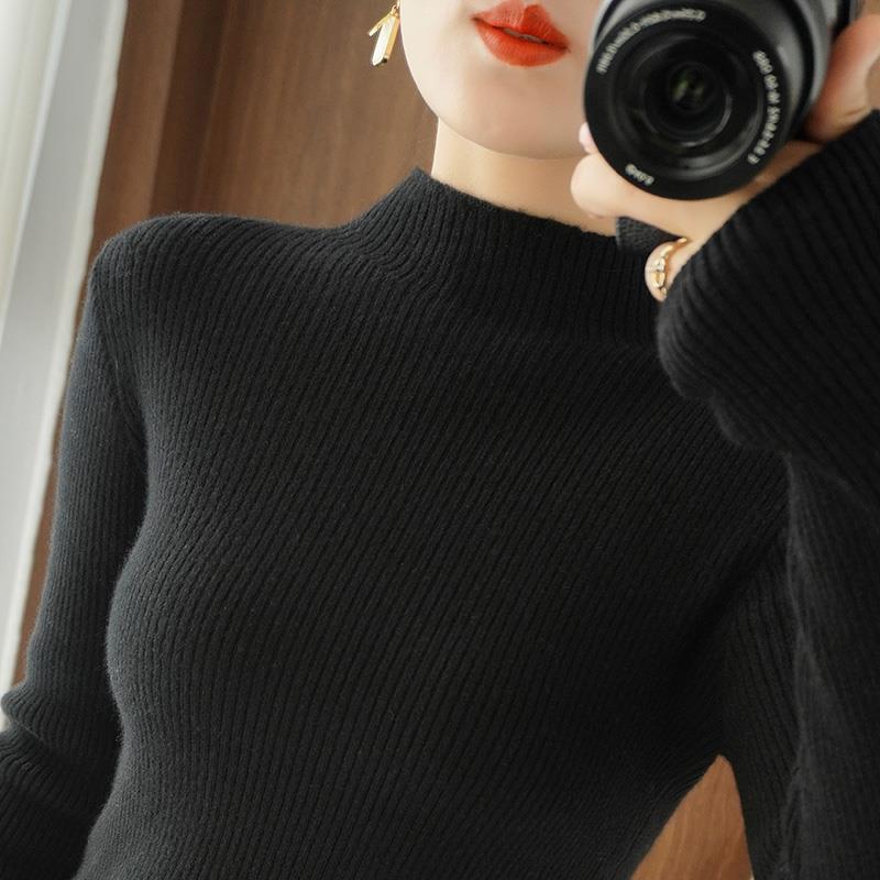 配大衣的内搭半高领白色毛衣打底衫女秋冬长袖套头大码针织1022u