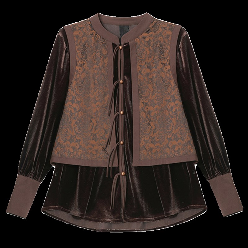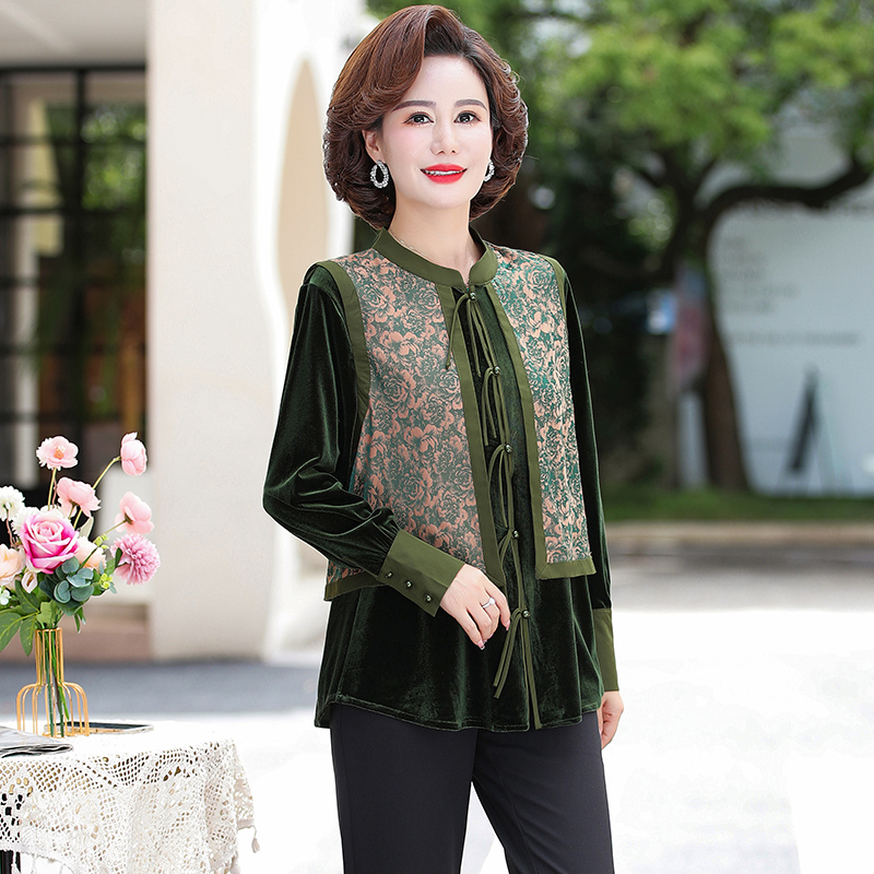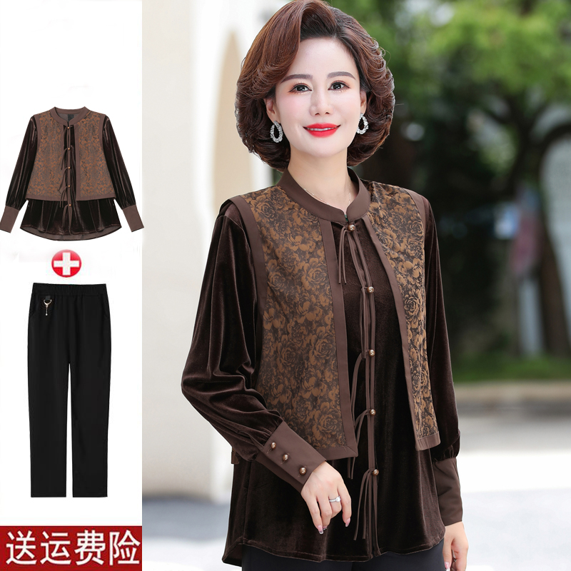 妈妈春装打底衫洋气大码2024新款中老年女春秋高贵假两件上衣套装