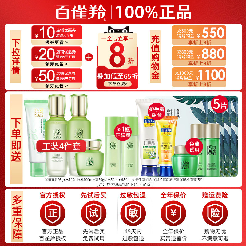 百雀羚补水保湿水乳套装官方正品