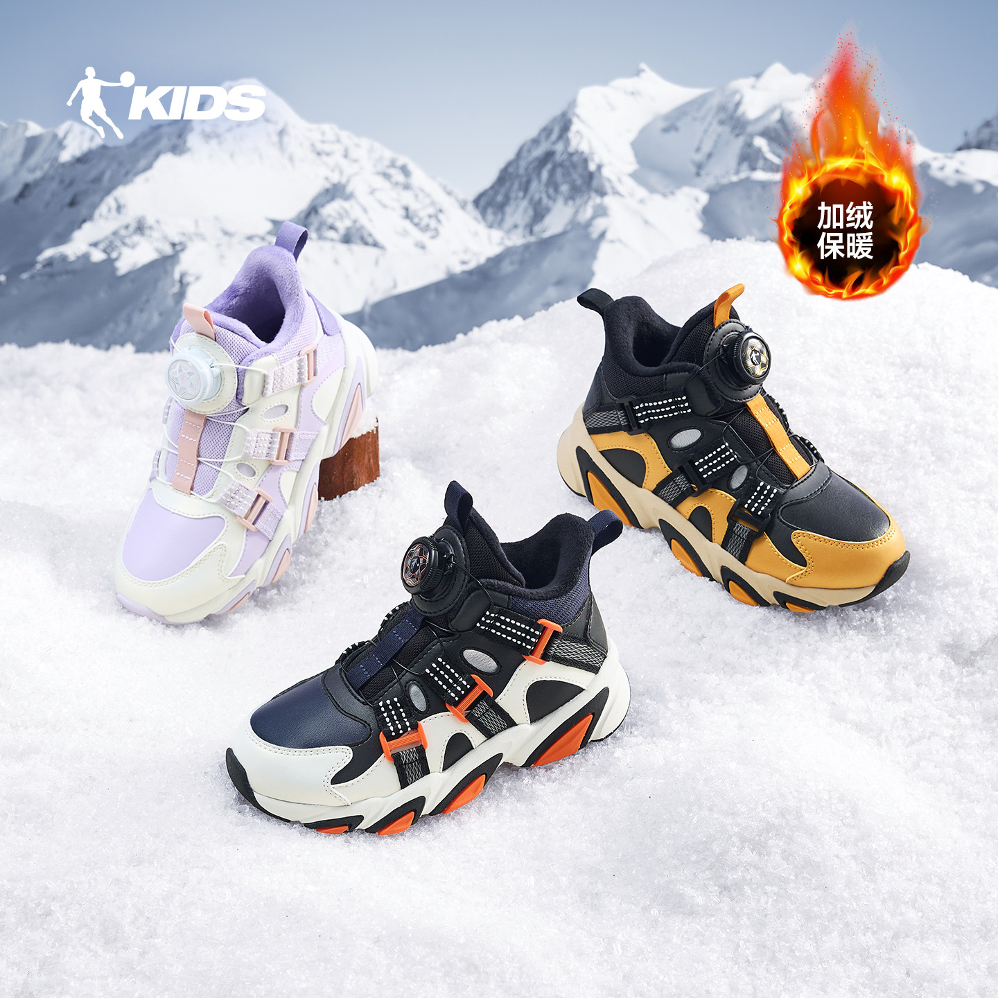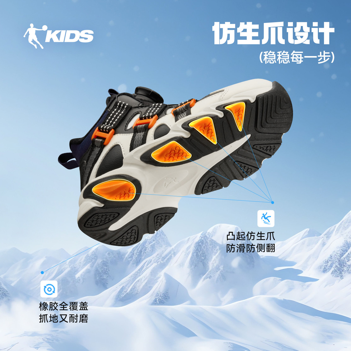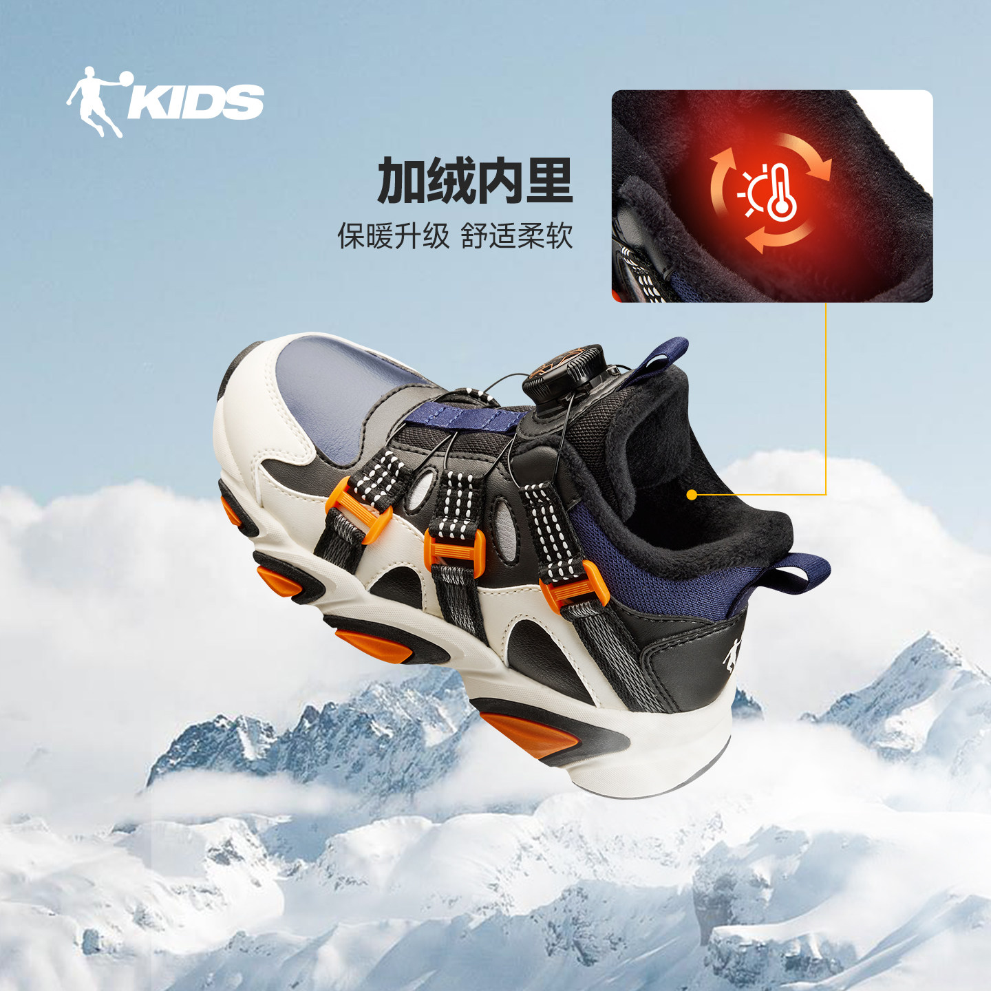 乔丹童鞋男童棉鞋高帮旋钮扣小童运动鞋2025冬季新款加绒保暖棉靴