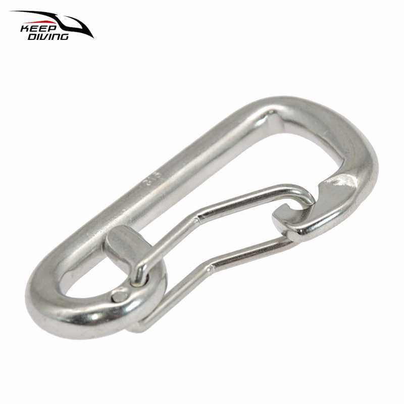 316不锈钢折弯简易钩80MM单头水肺潜水BCD装备弹簧挂钩快卸安全扣