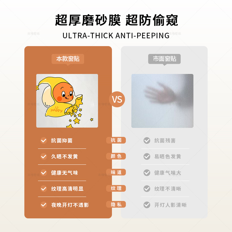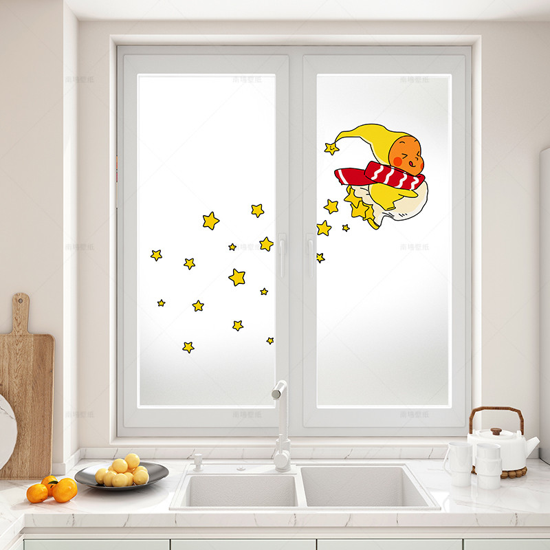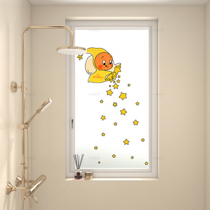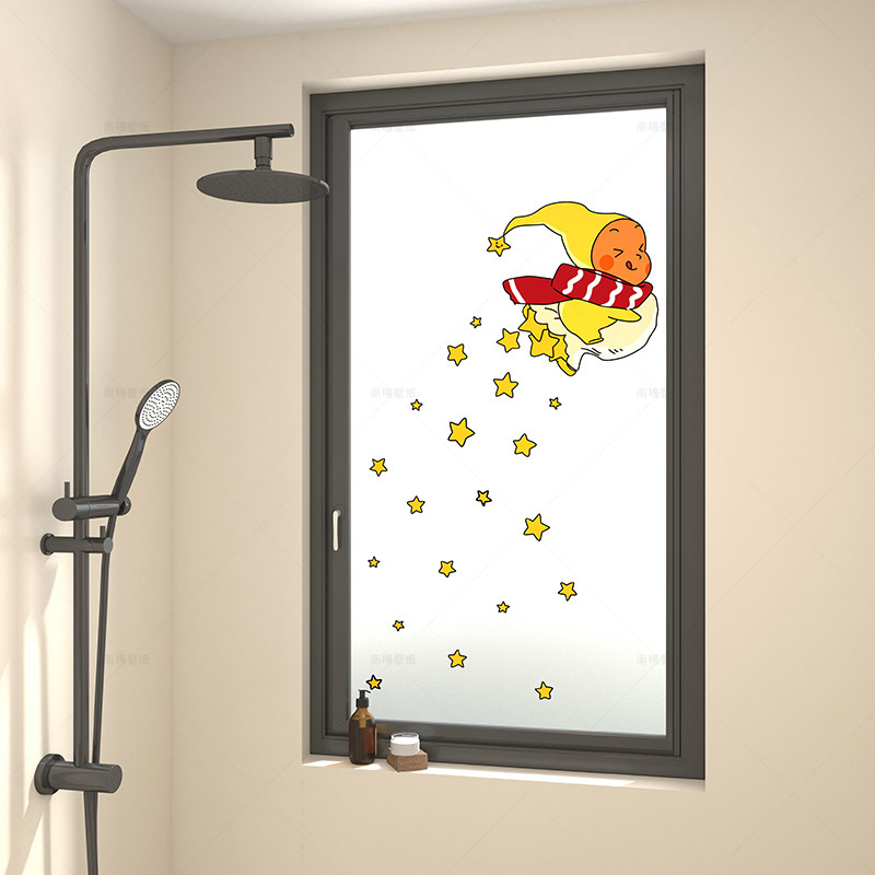 星星人卡通装饰贴洗手间磨砂玻璃贴纸浴室厨房防窥膜静电免胶窗贴