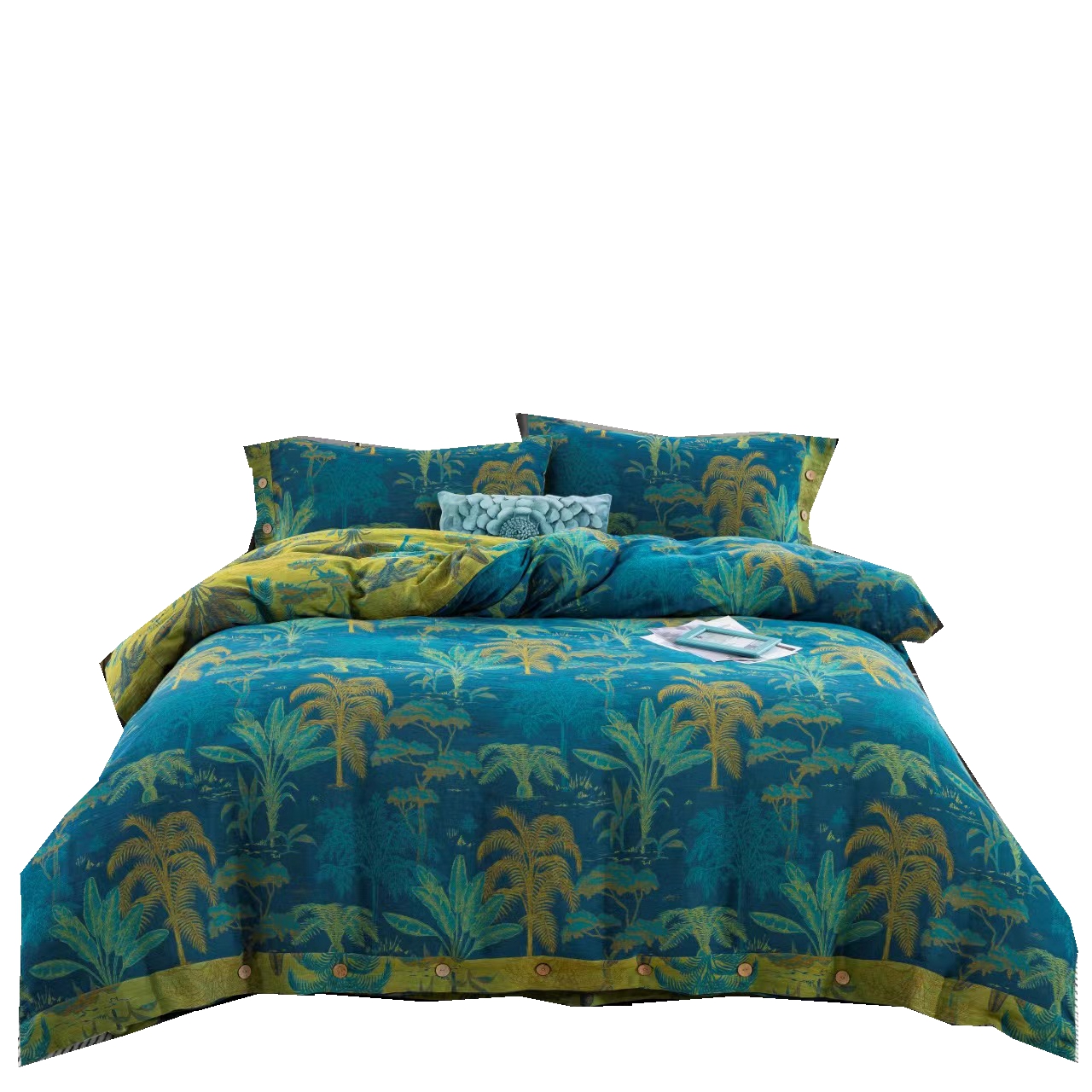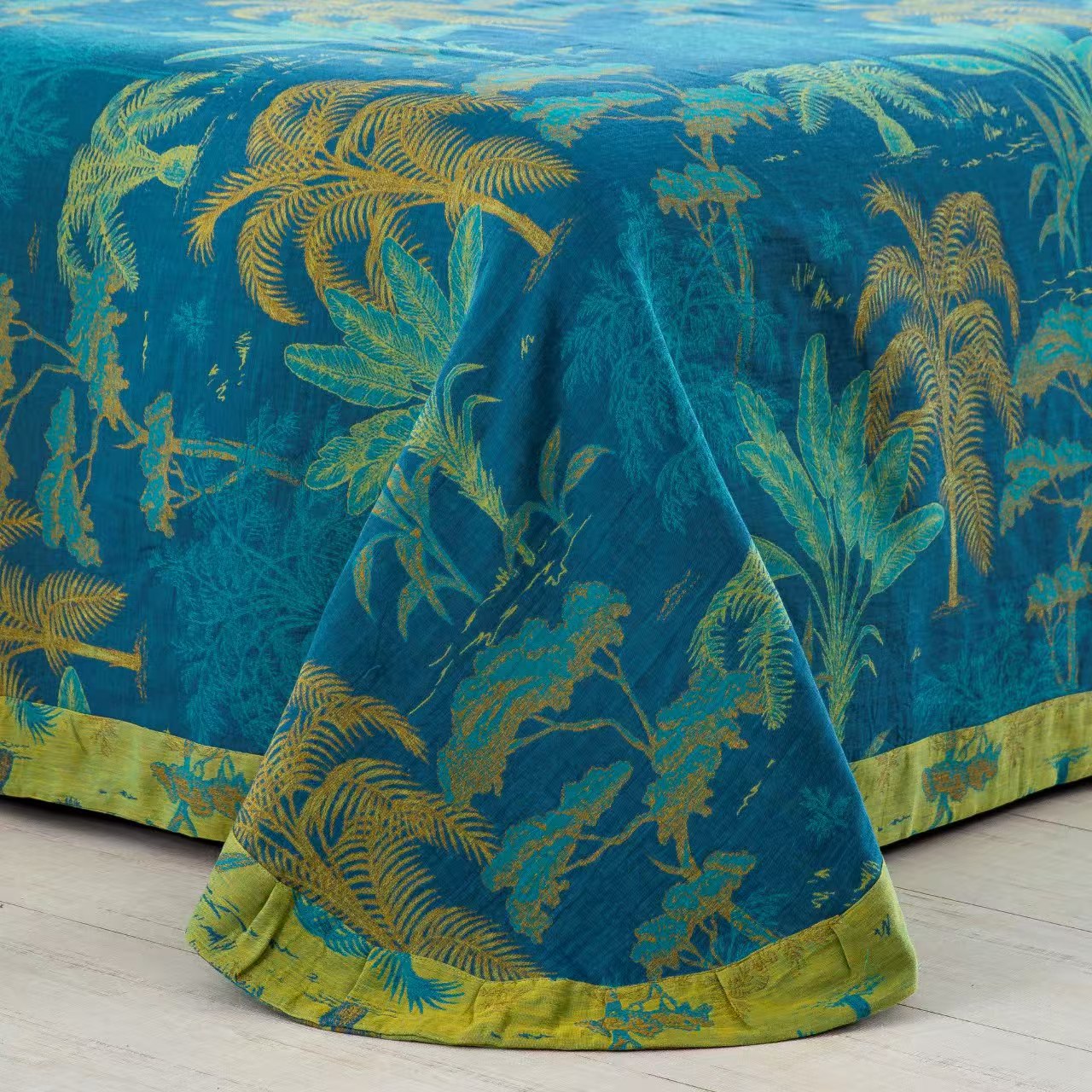 轻奢复古双面全棉A类色织提花双层纱四件套25新纯棉床品纽扣被套