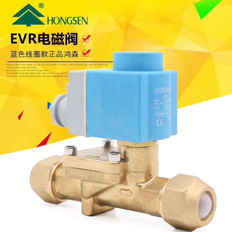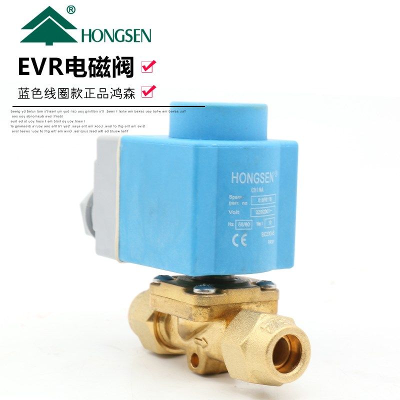 鸿森丹式丹佛斯款蓝色线圈制冷机组冷库焊口螺口电磁阀 EVR电磁阀