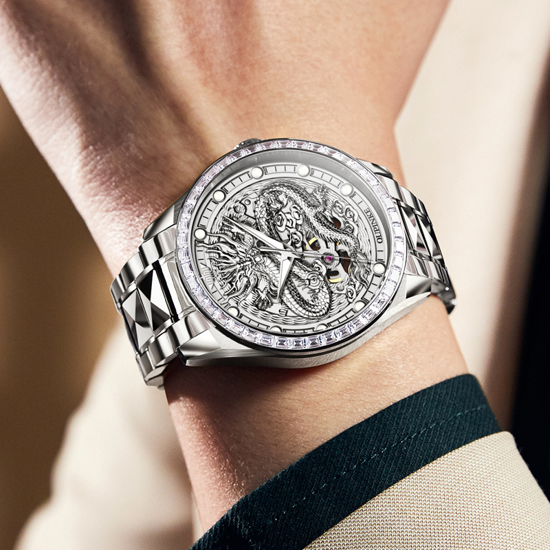 国风银龙表瑞士认证正品牌手表复古商务男士全自动机械表夜光十大