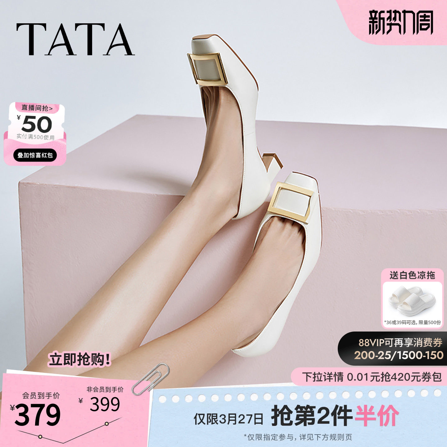 TATA法式浅口方扣单鞋女