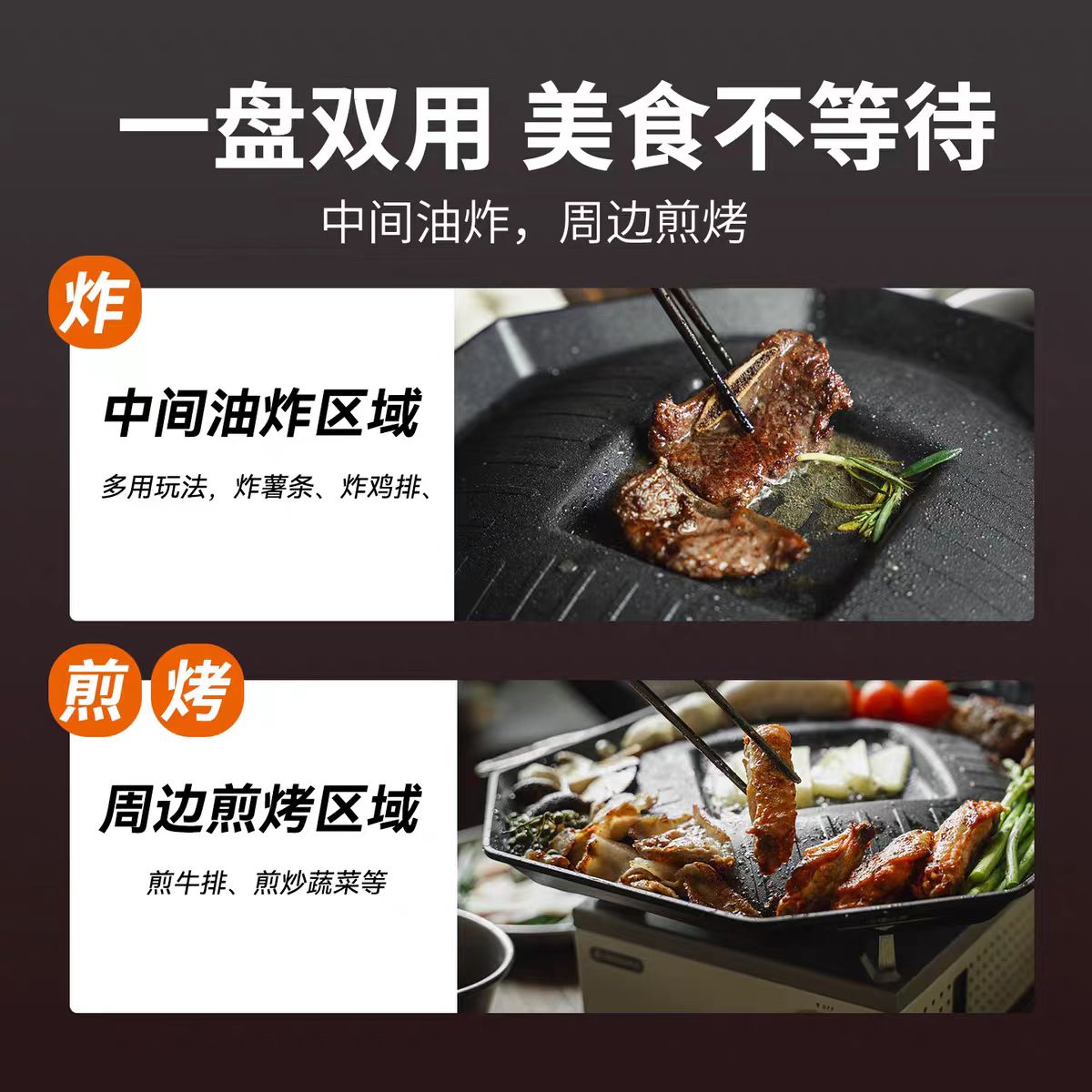 火枫千味煎炸多用烤盘户外卡式炉韩式烤肉露营不粘折叠铁板烧烤锅