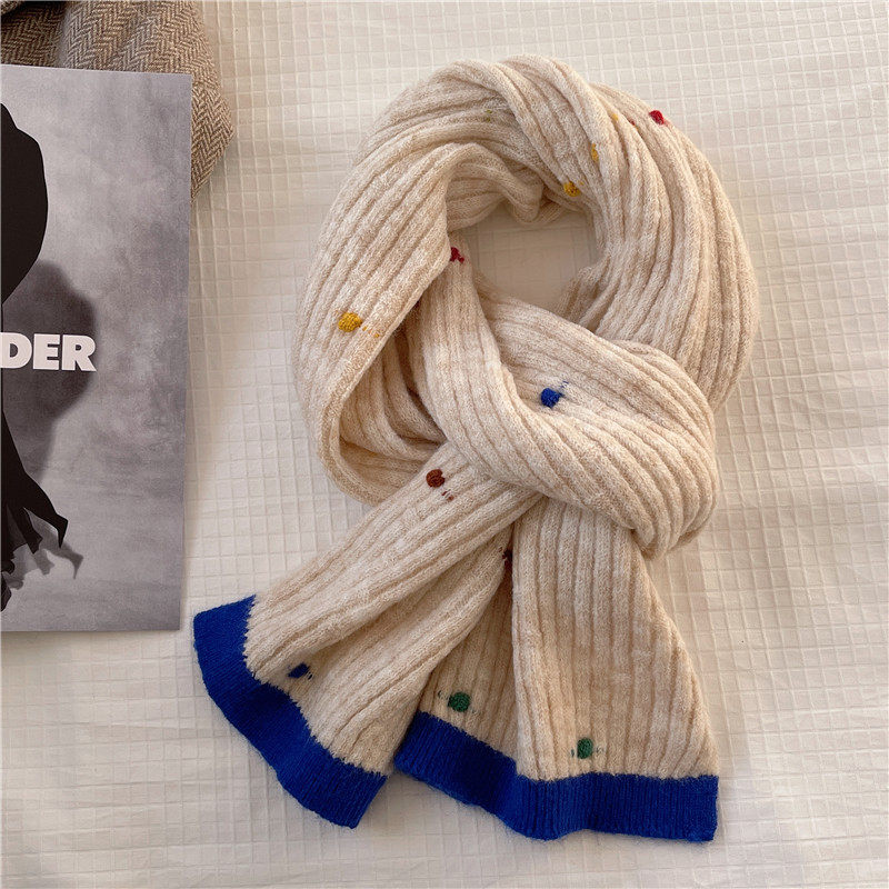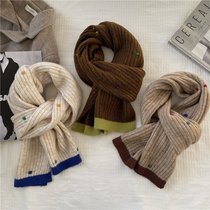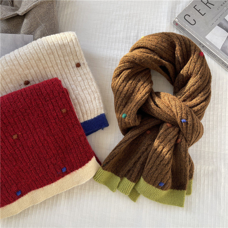 彩色点点仿羊绒针织毛线围巾女韩版ins冬季可爱百搭保暖围脖学生