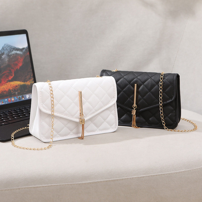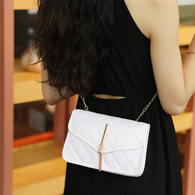 经典款绣花菱格链条小方包bags时尚流苏吊坠迷你手机包斜挎女包批