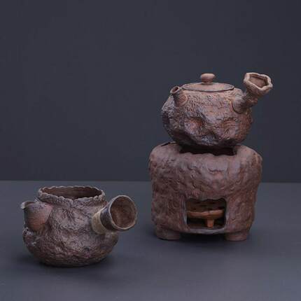 石头纹理煮茶炭火烧水单壶黑陶