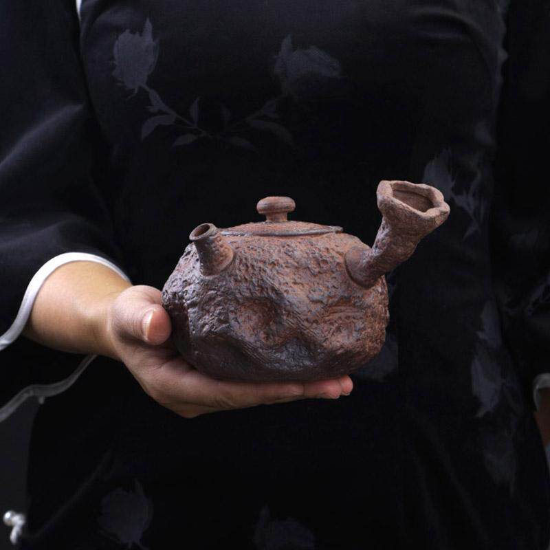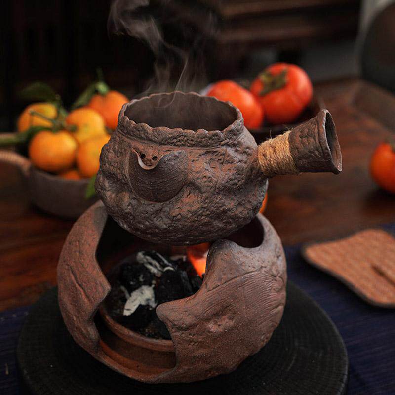 岩泥粗陶石头肌理侧把煮茶壶罐罐壶中式围炉煮茶炭火烧水家用单壶