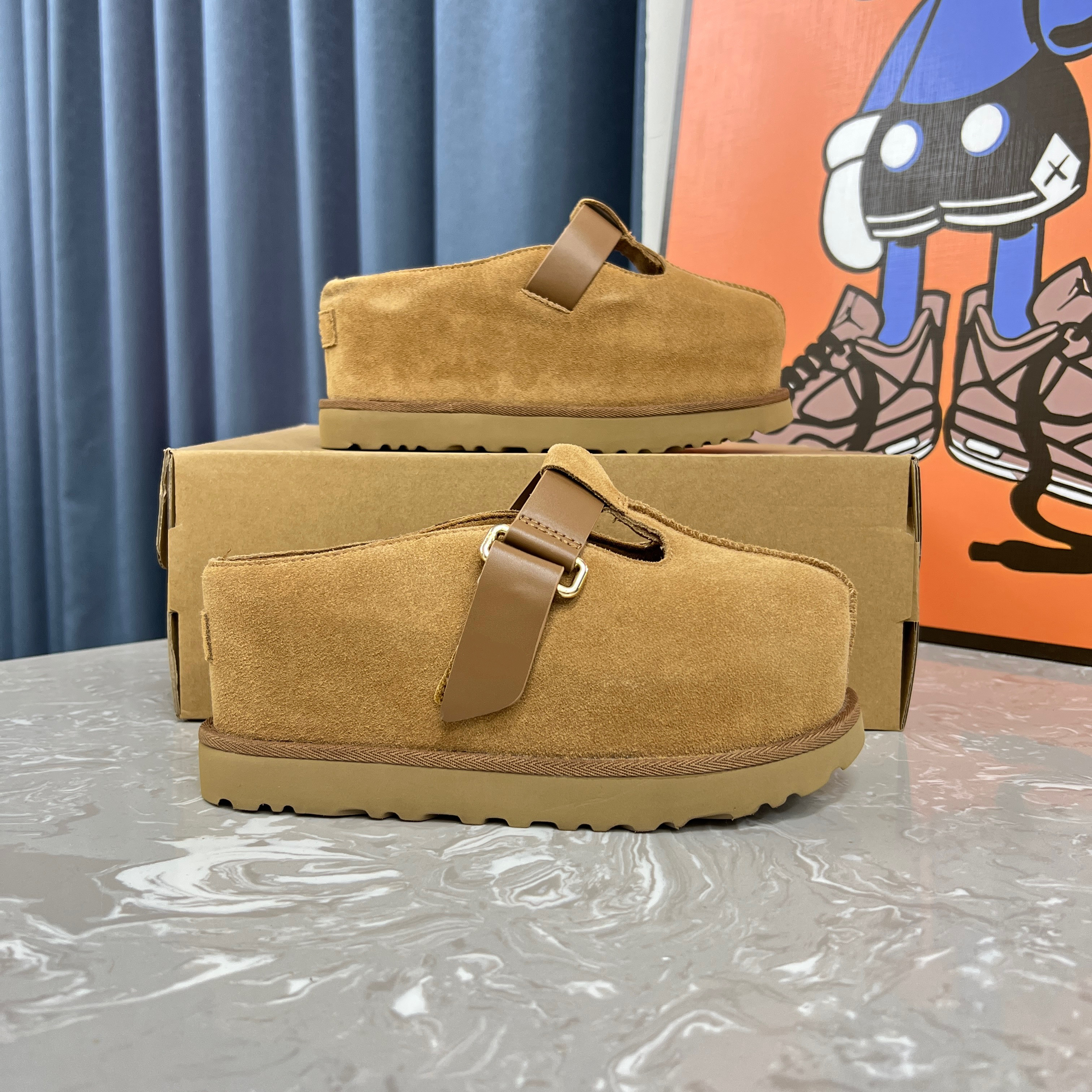金星克罗格真皮厚底增高7cm拖鞋包头玛丽珍鞋半拖勃肯鞋穆勒拖女