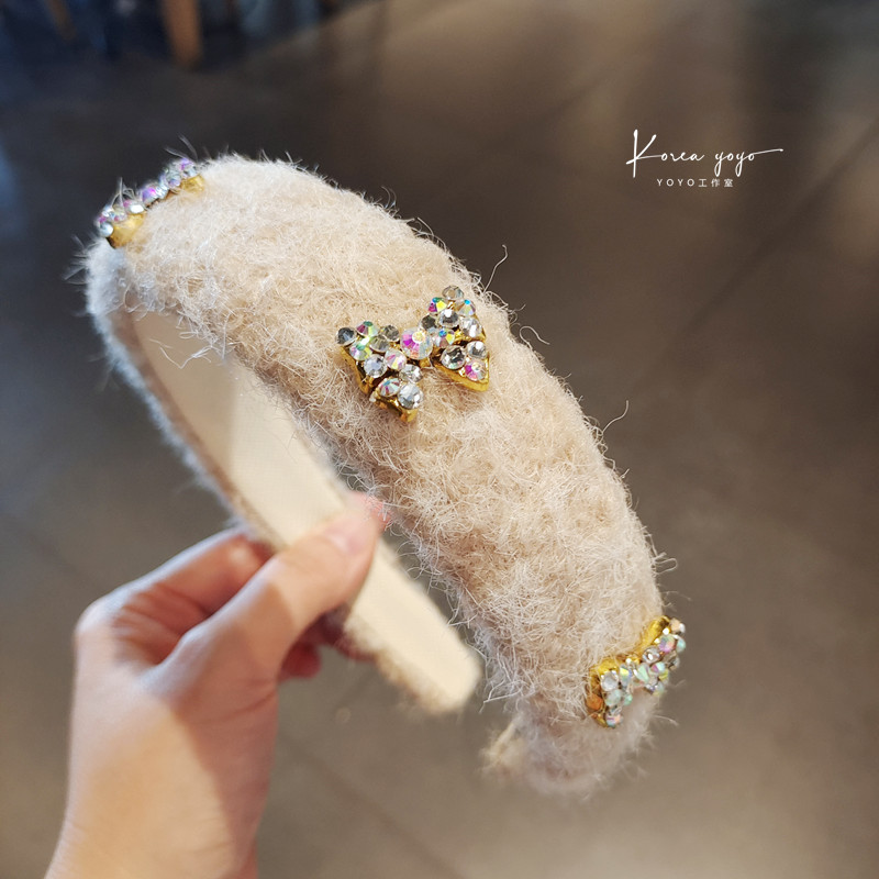 秋冬毛毛高颅顶发箍发卡镶钻水钻防滑宽头箍舒适卡子发饰头饰饰品
