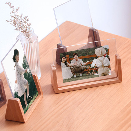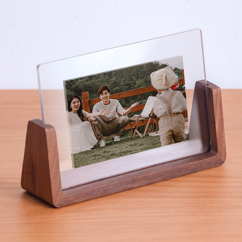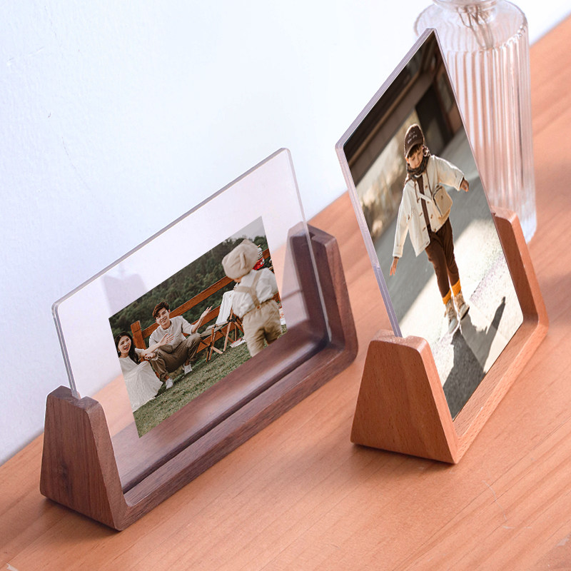 现代简约胡桃木榉木相框摆台照片678寸亚克力实木透明框架像架子