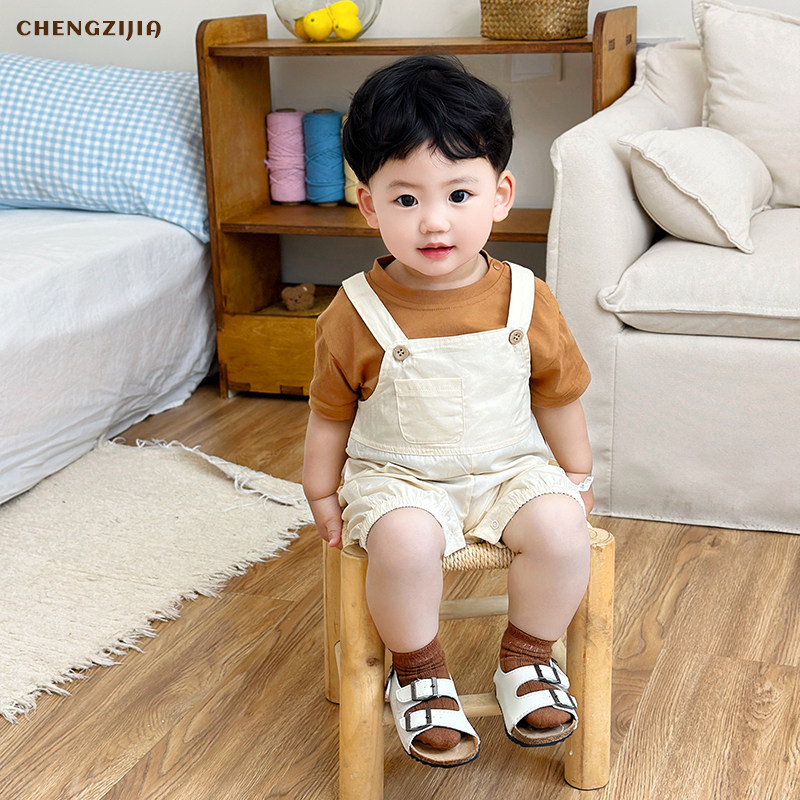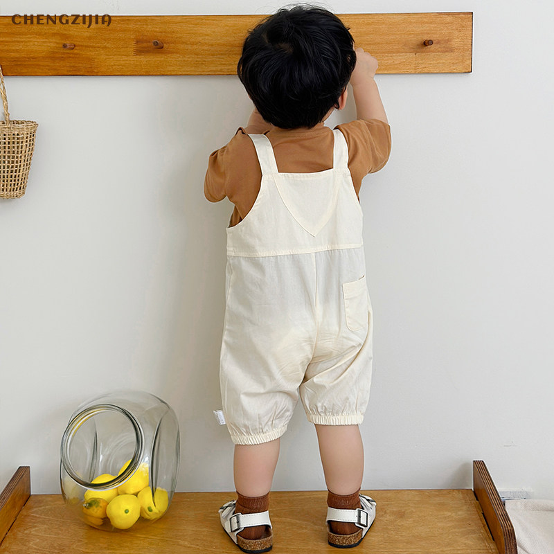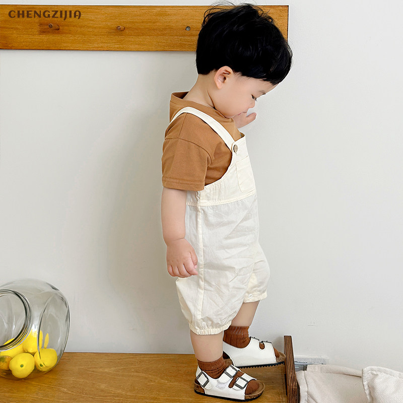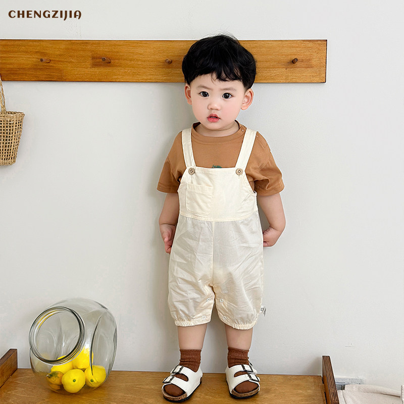 男童夏季韩系连体衣短袖套装宝宝纯色休闲背带裤婴儿卡通印花T恤