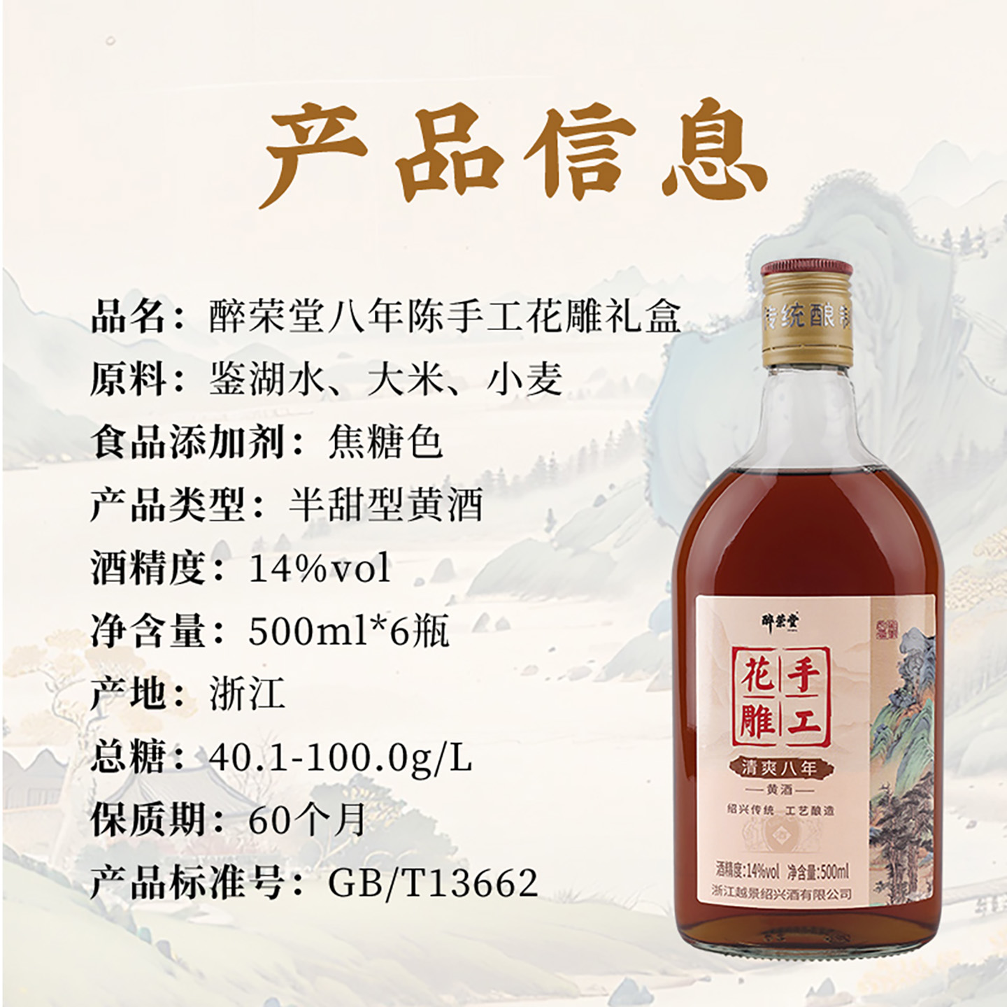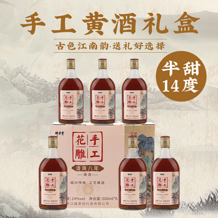 绍兴特产黄酒瓶装礼盒装花雕酒正宗8年陈半甜型加饭老酒聚会送礼