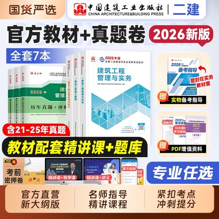 建工社官方新版二建教材建筑2026年二级建造师考试历年真题试卷章节练习题集市政机电公路水利专业实务施工管理法律法规网课2025版
