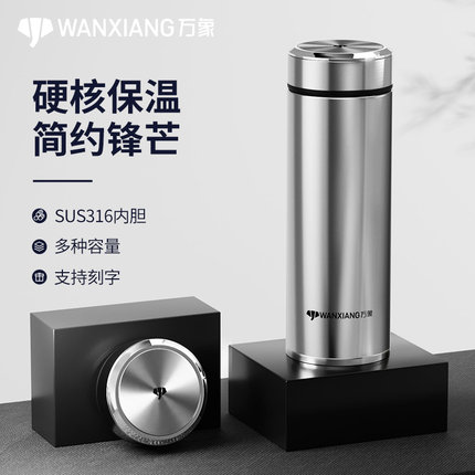 万象车载保温杯316不锈钢男士茶杯大容量水杯简约高端真空杯子