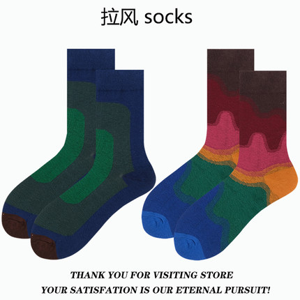 蓝绿渐变彩色中筒韩国日系潮流女士中筒袜子春秋款纯棉个性网红袜