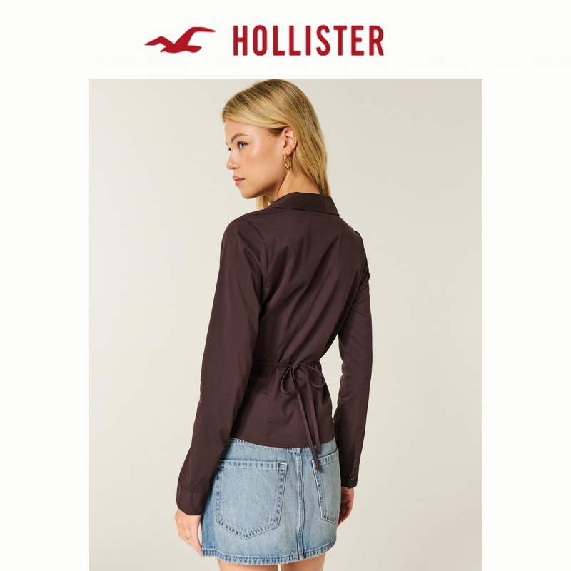 Hollister25秋冬新款Y2K辣妹修身收腰系带府绸衬衫女装340-5486