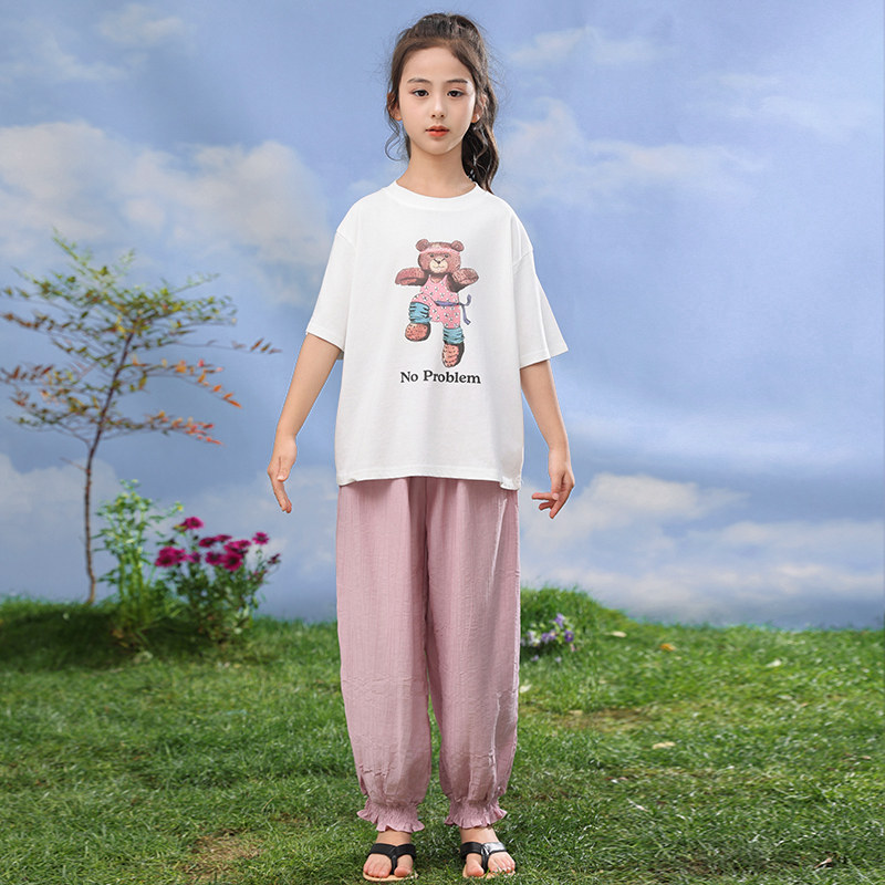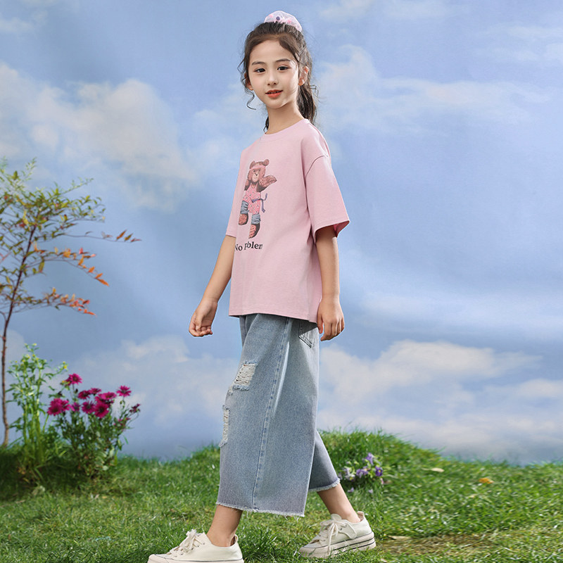 女童夏季套装2025新款洋气时髦中大童短袖T恤儿童夏装纯棉两件套