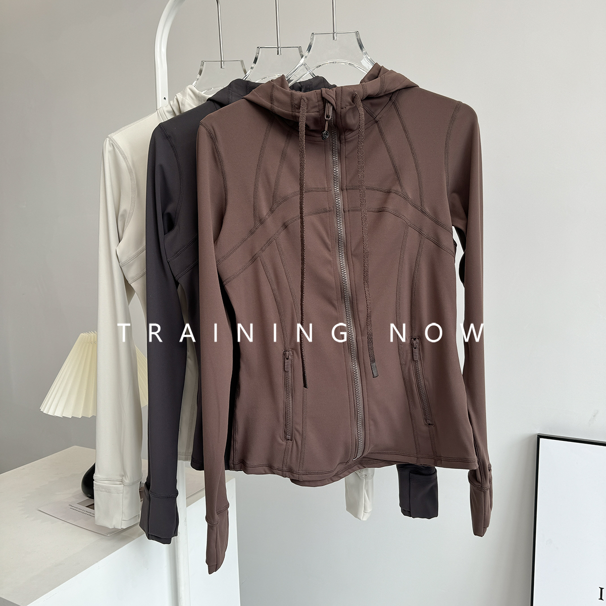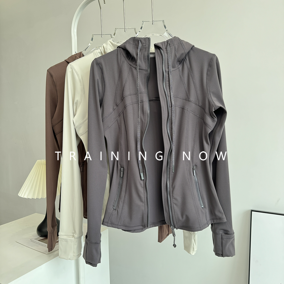 运动外套女显瘦立领连帽修身健身夹克长袖晨跑步瑜伽服上衣秋冬
