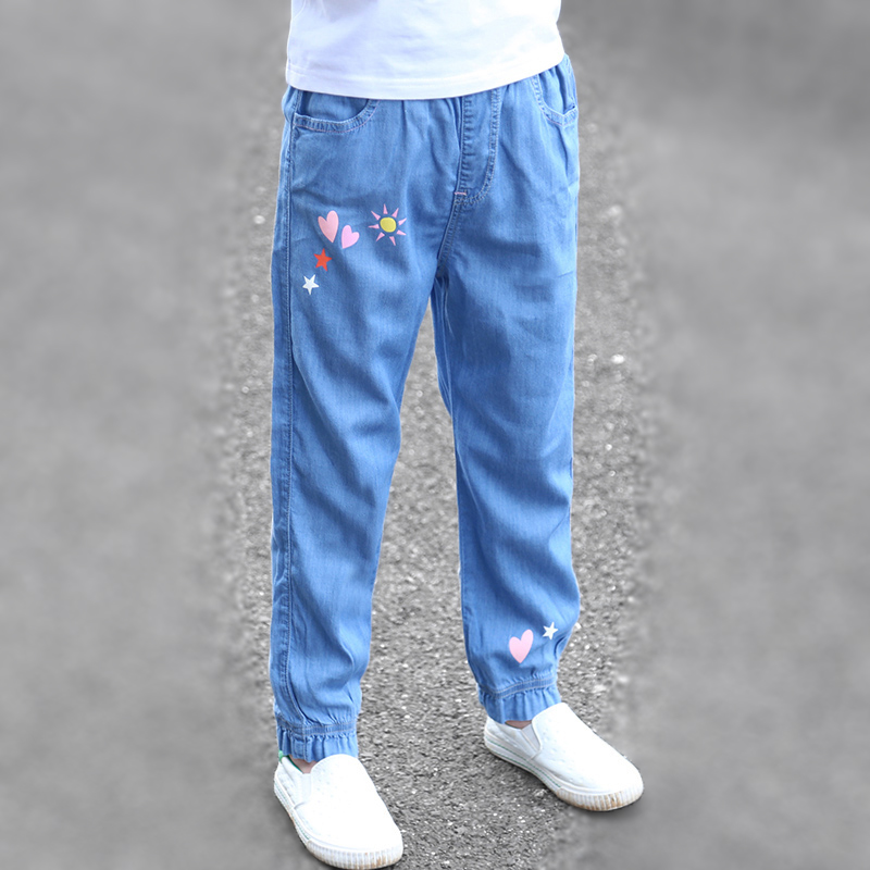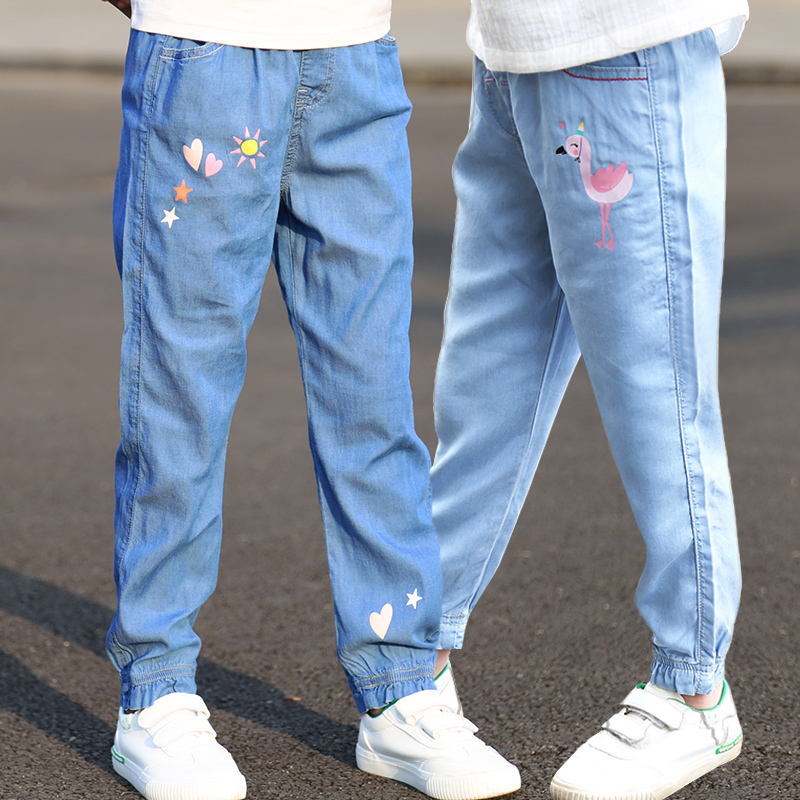 女童裤子夏季薄款儿童牛仔裤小女孩天丝长裤洋气防蚊裤春秋宽松