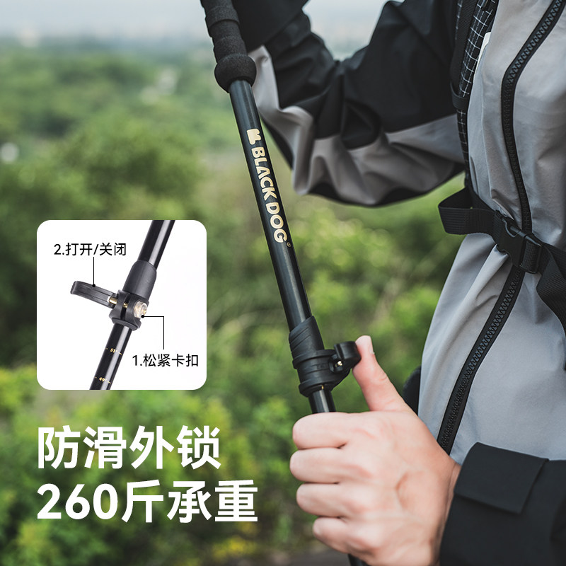 BLACKDOG黑狗登山杖手杖户外徒步爬山铝合金伸缩棍拐杖装备双根
