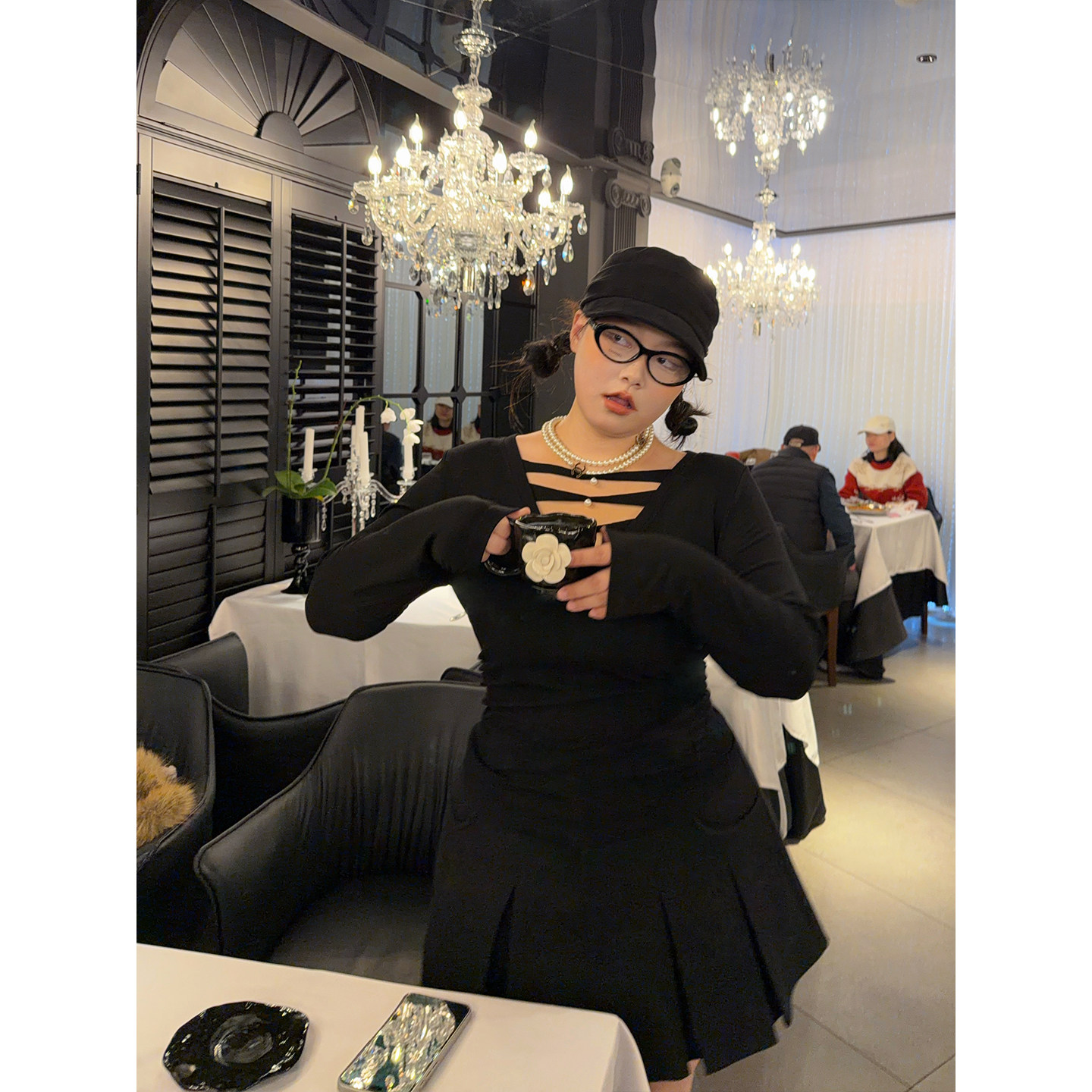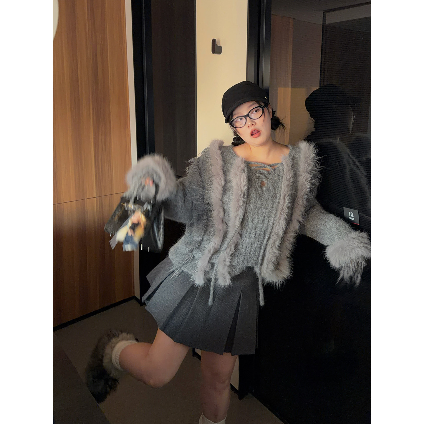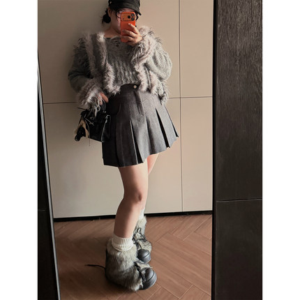 阿周家大码微胖【褶子锋利】20羊毛呢斜纹高腰显瘦毛呢百褶裙半裙
