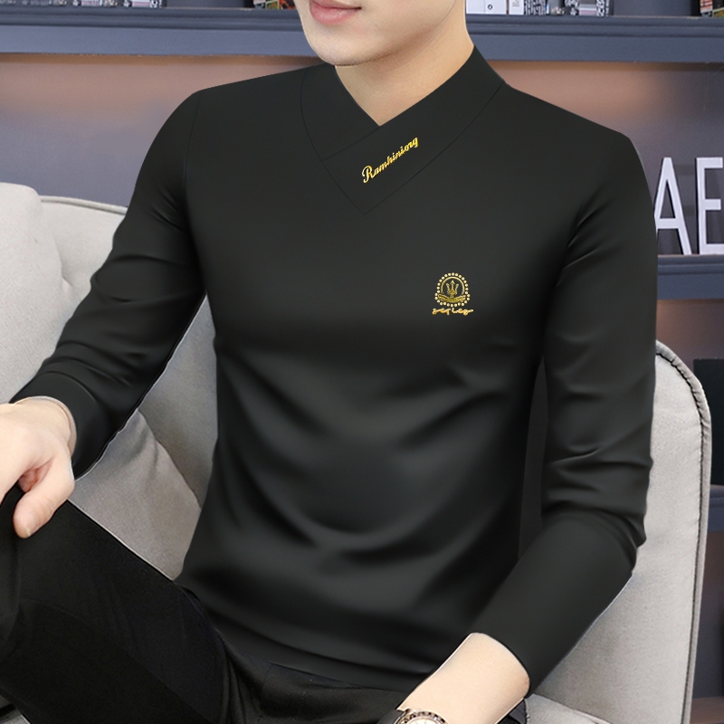 2025年秋冬季男士V领长袖T恤新款高端中年修身保暖打底衫体恤上衣