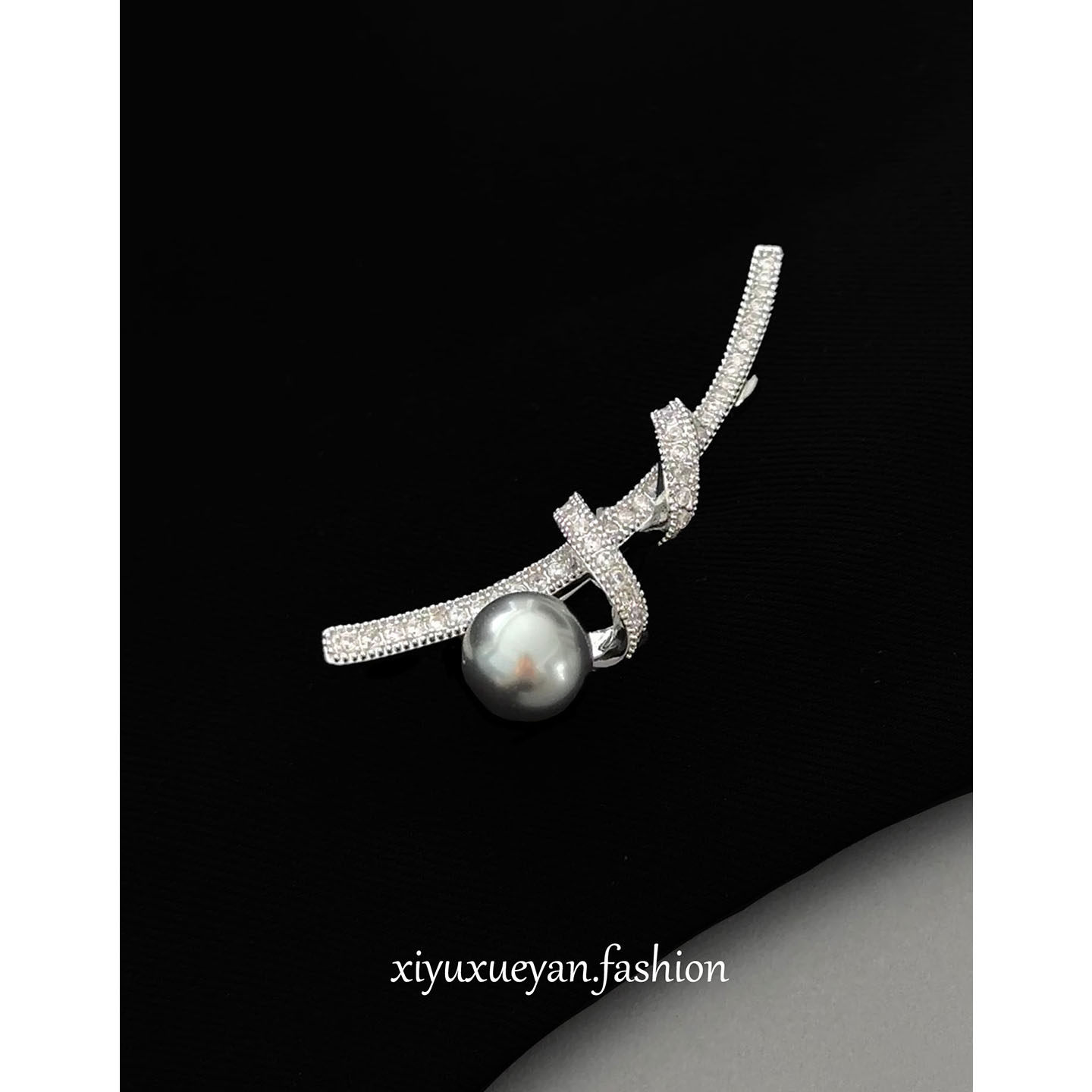 日本M家同款极简独特精致多麻珍珠胸针男 小众高级设计感西装配饰