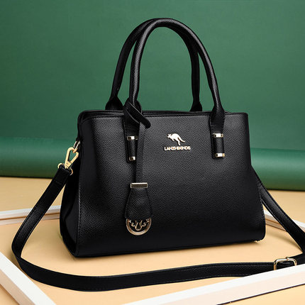 蓝之馨袋鼠真皮中年单肩妈妈包
