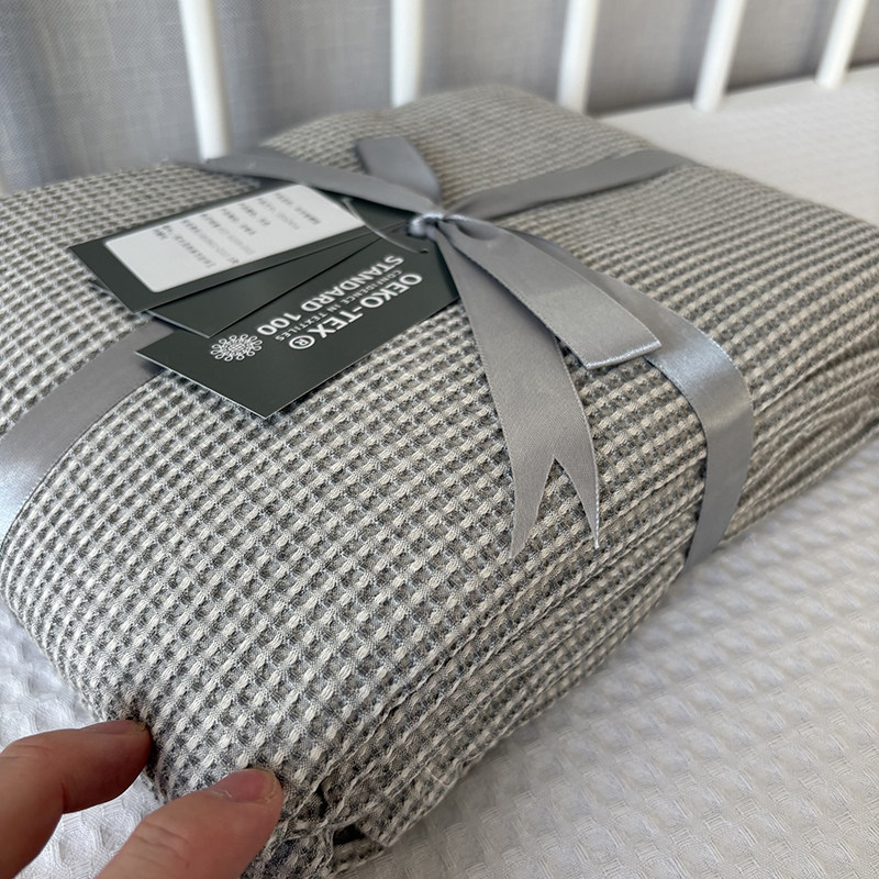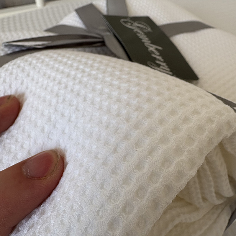 外贸尾货100%纯棉精梳棉蜂巢提花多用途全棉色织单人双人盖毯浴巾