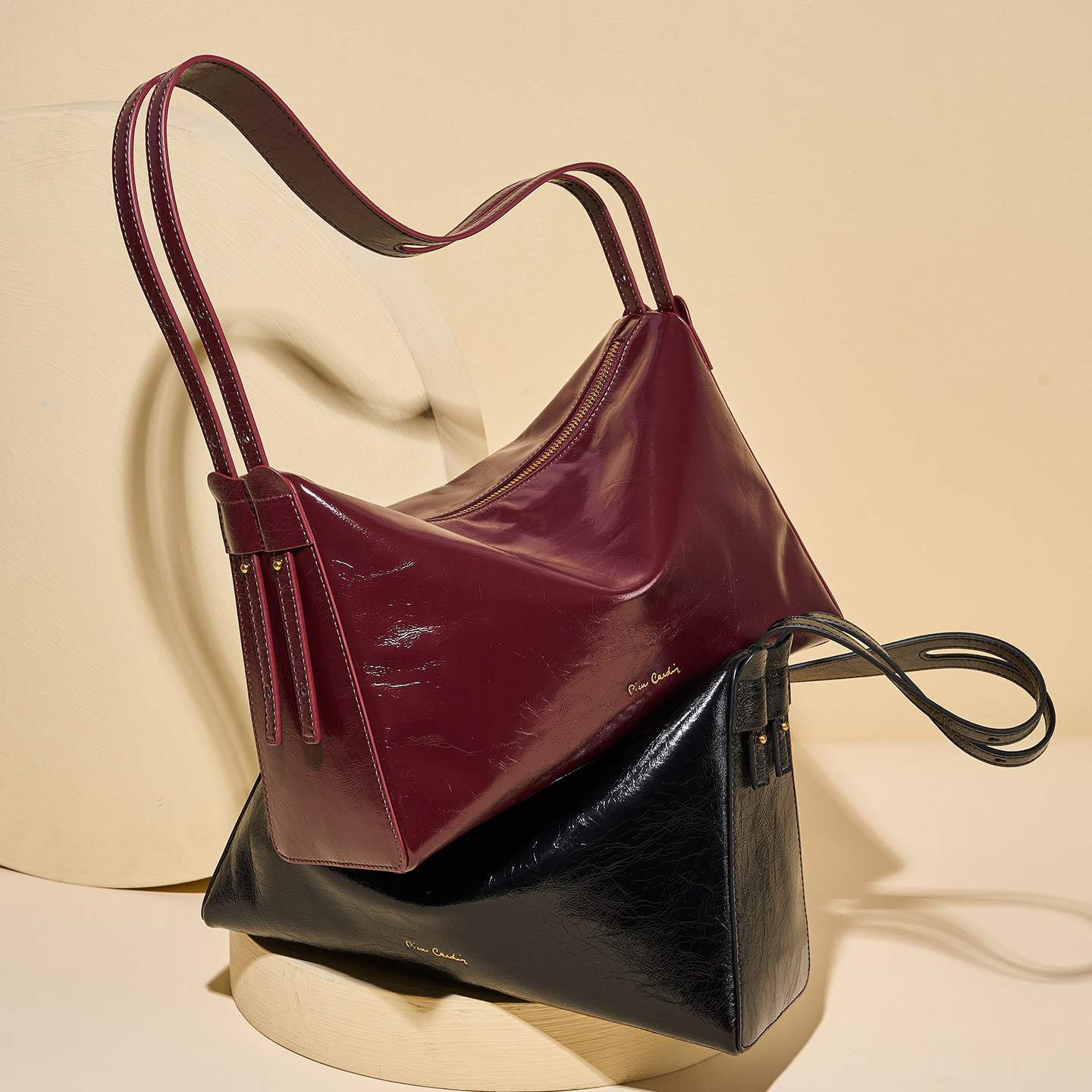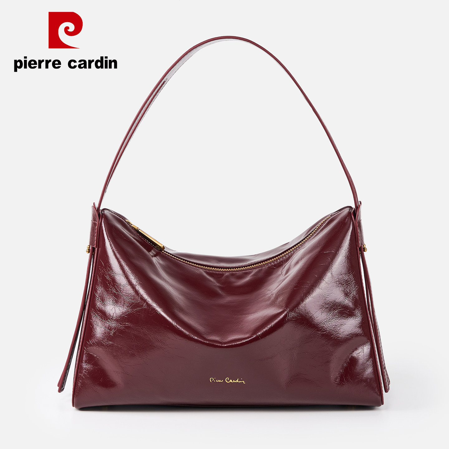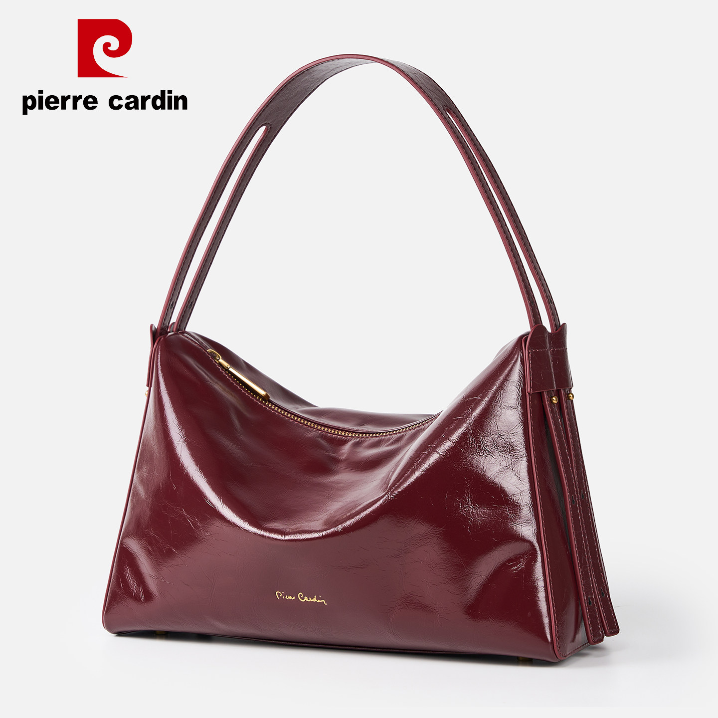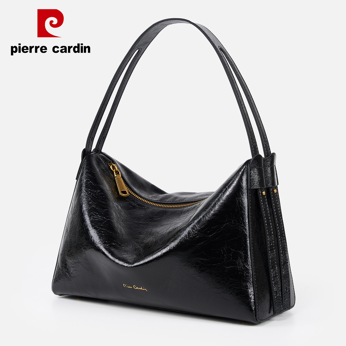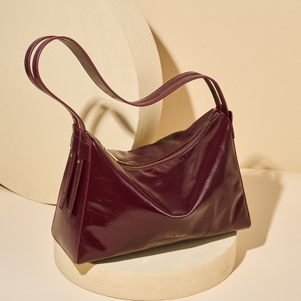 皮尔卡丹油蜡头层真皮腋下女包
