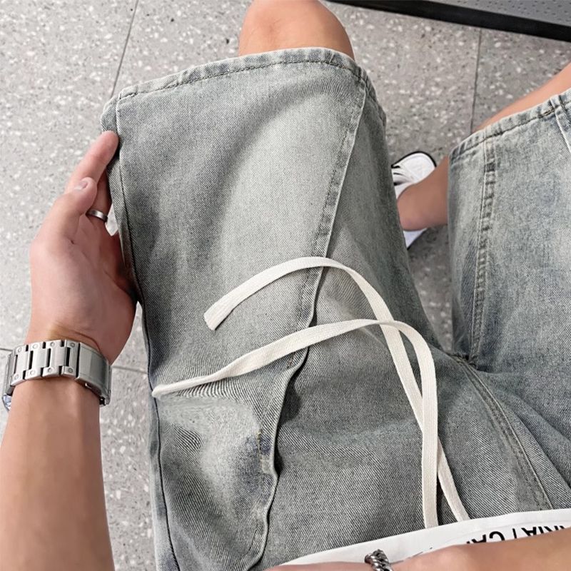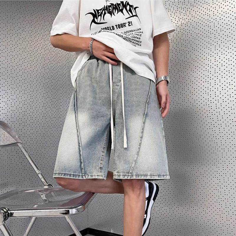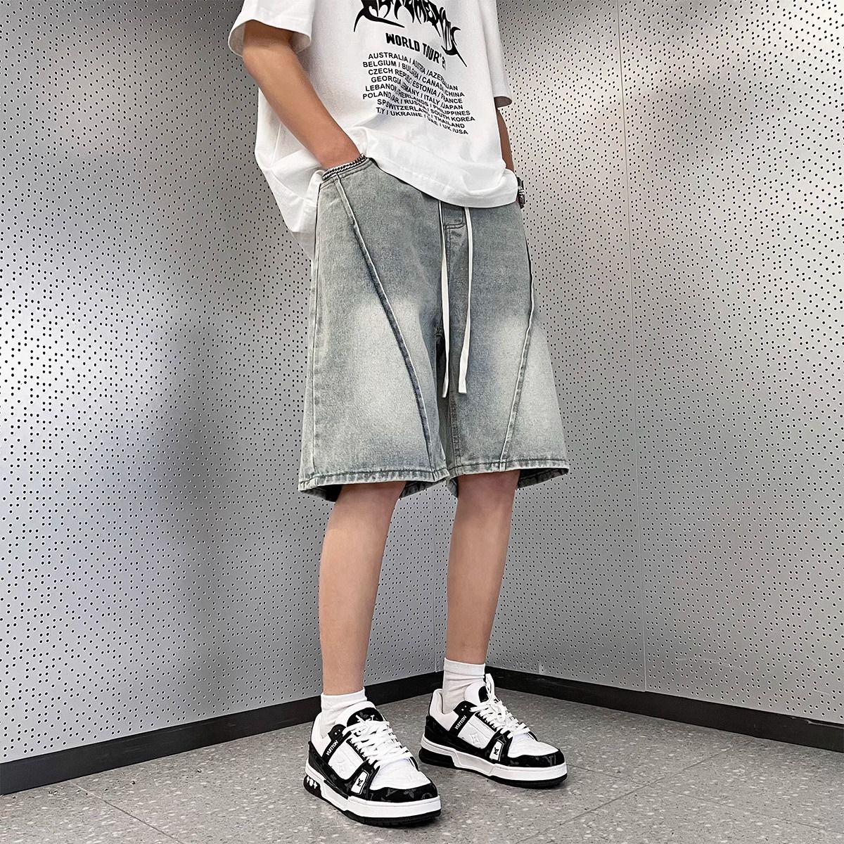 水洗复古牛仔短裤男夏季欧美潮牌oversize裤子少年感美式五分中裤