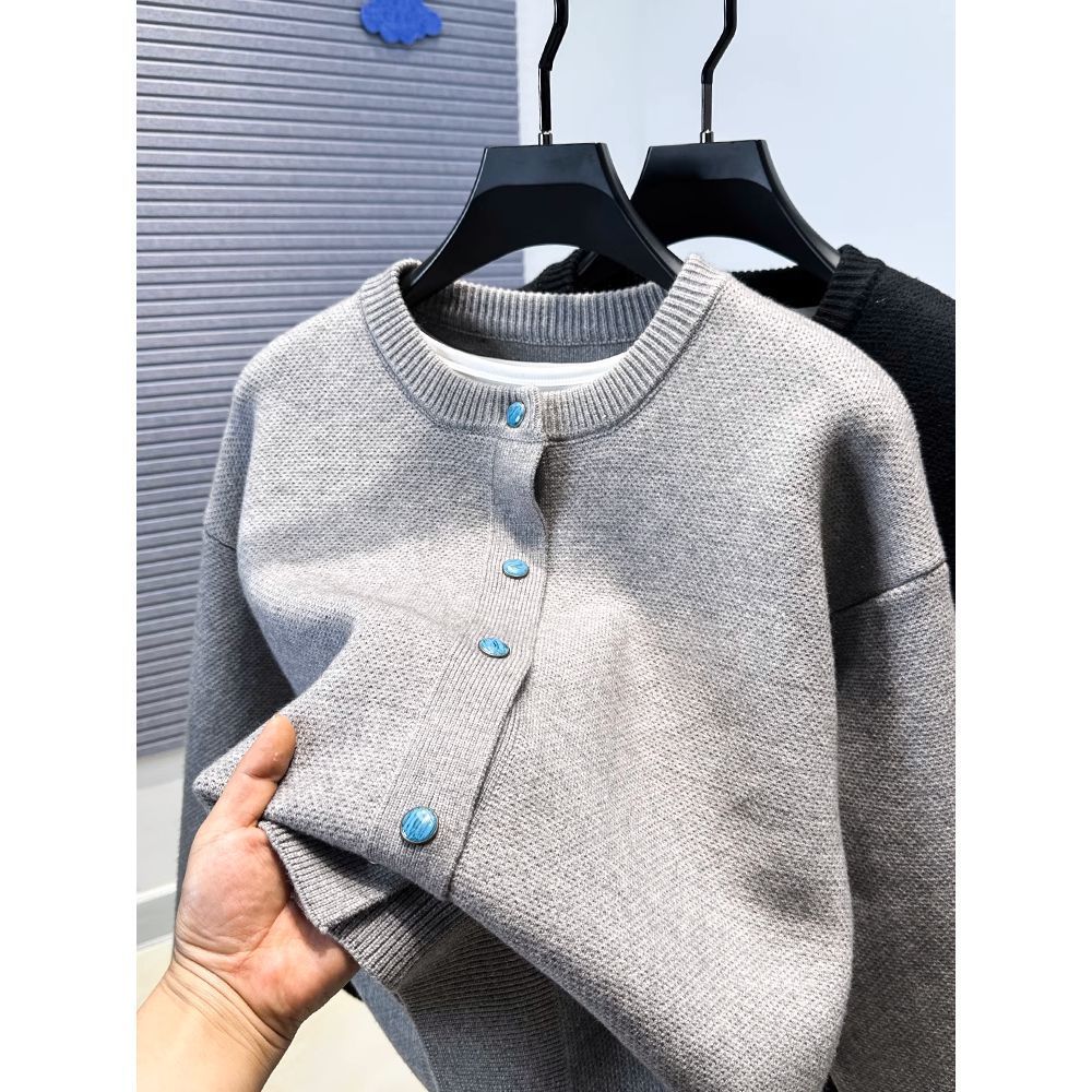 圆领羊毛针织开衫女薄款春秋新款宽松毛衣外套外搭小香风上衣夏