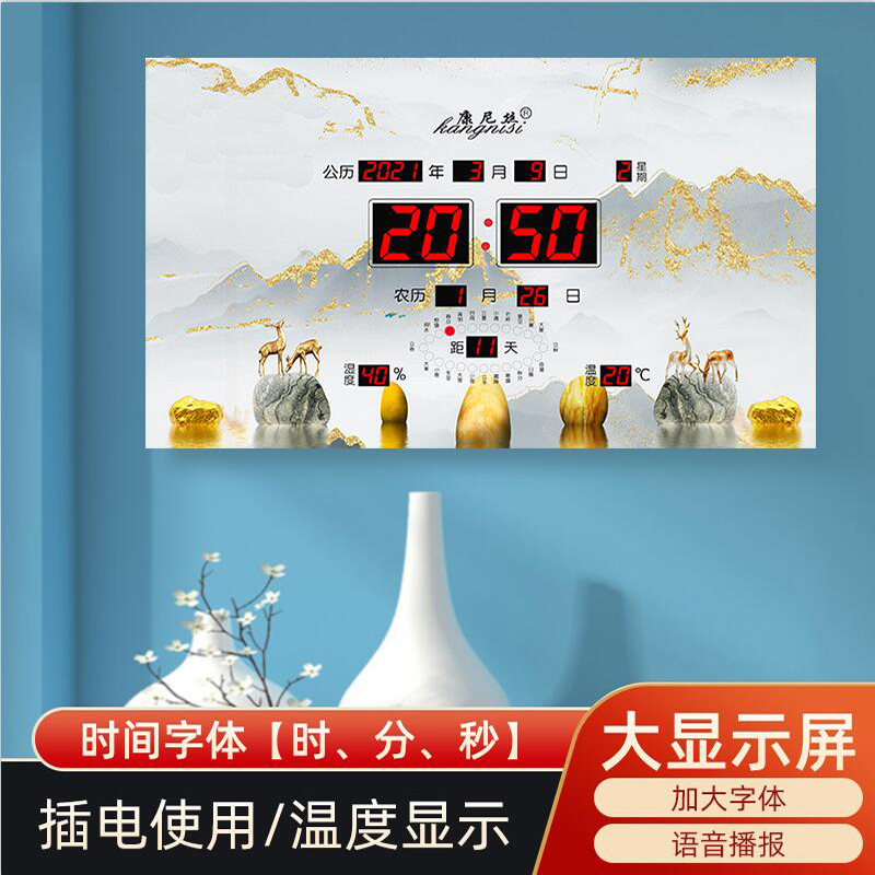 2021新款数码万年历自动对时y超薄挂钟客厅电子钟表日历钟风景装