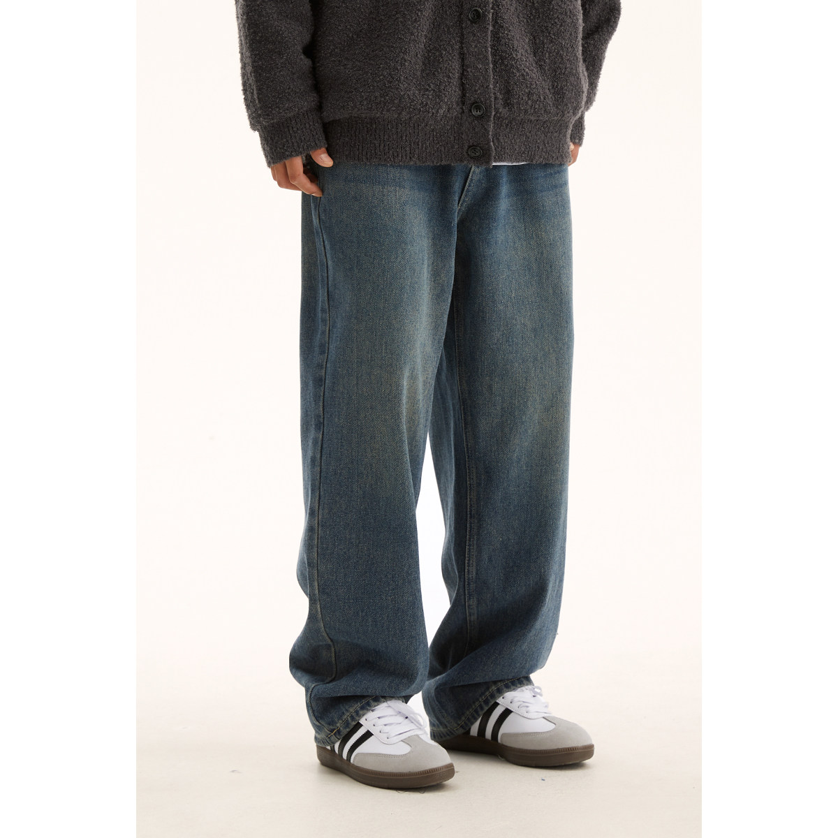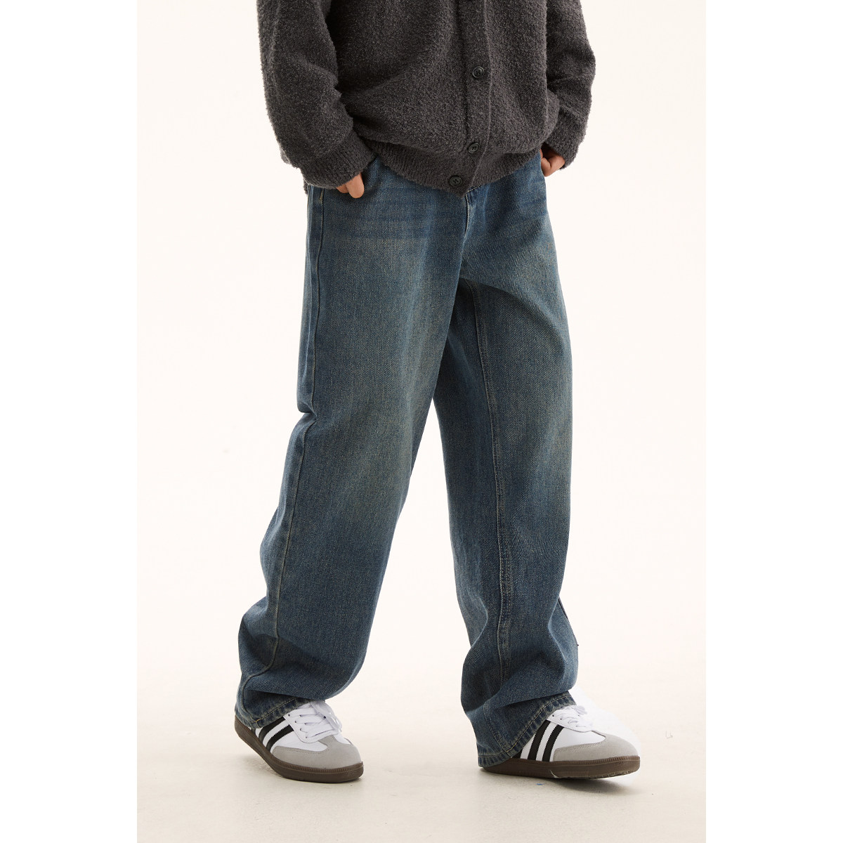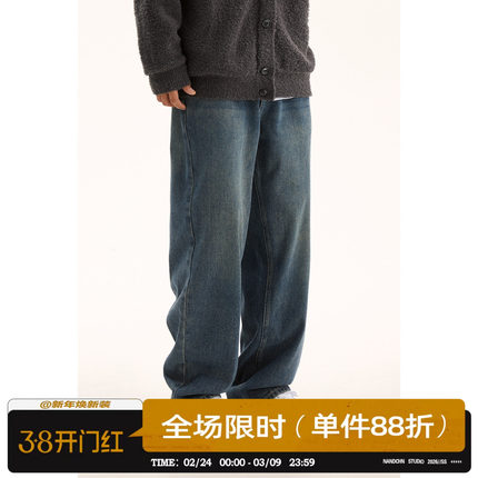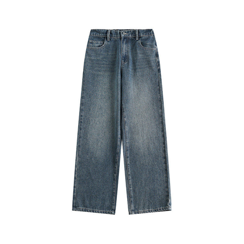 男道秋季复古水洗做旧直筒牛仔裤男生宽松百搭高街松紧腰休闲长裤