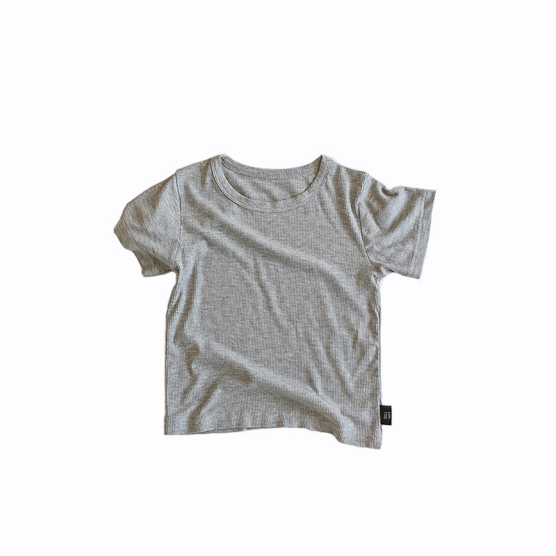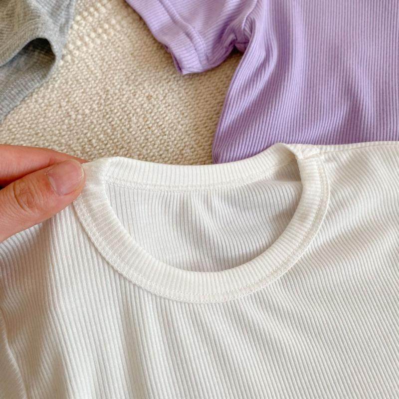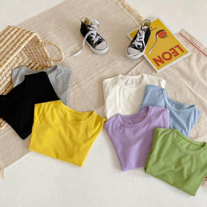 儿童莫代尔坑条短袖男童圆领上衣夏装薄款女宝宝T恤小童打底衫潮